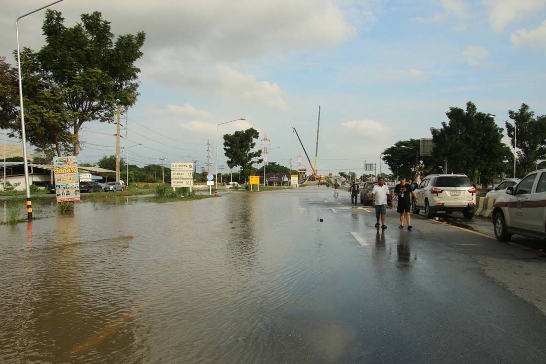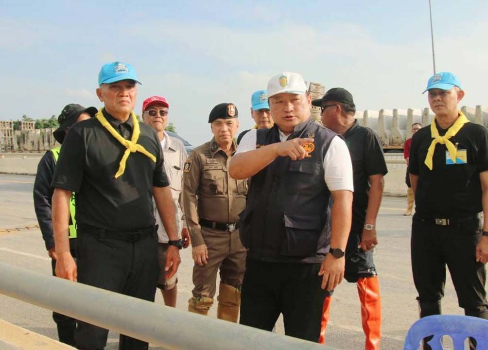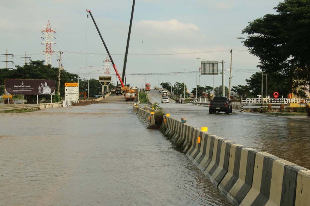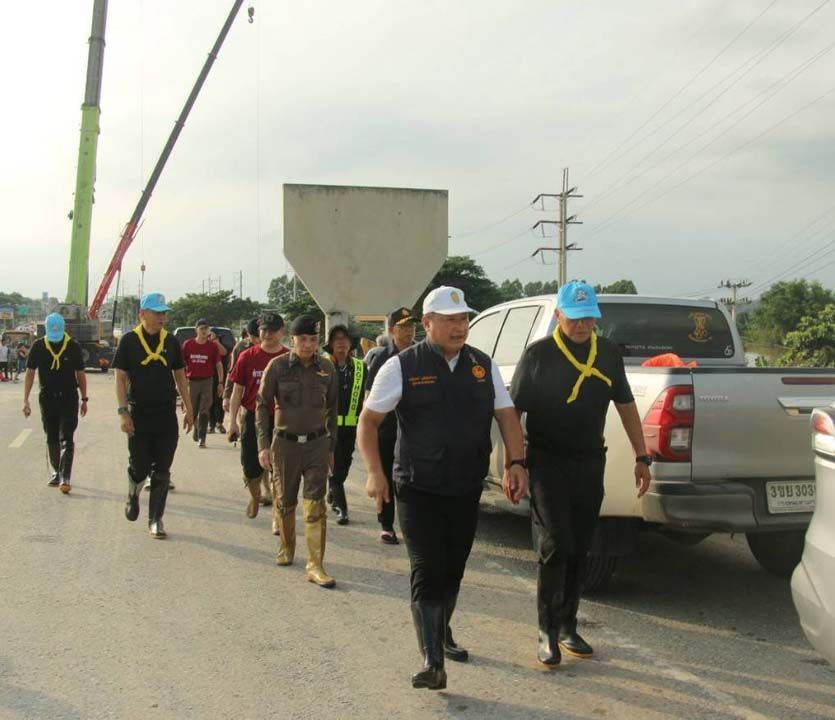 ต่อมาเวลา 16.00 น. พล.ต.ท.วัฒนา นำคณะ ตรวจติดตามสถานการณ์อุทกภัย บริเวณจุดกลับรถใต้สะพานป่าโมก สะพานข้ามแม่น้ำเจ้าพระยา เป็นเหตุให้น้ำท่วมบริเวณถนนเส้น 33 สุพรรณบุรี-อ่างทอง บริเวณช่วงก่อนขึ้นสะพานทั้งสองฝั่งระยะทางยาวประมาณ 150 เมตร ในพื้นที่ สภ.ป่าโมก จว.อ่างทอง ตรวจจุดผนังกั้นน้ำพัง อ.ป่าโมก จว.อ่างทอง