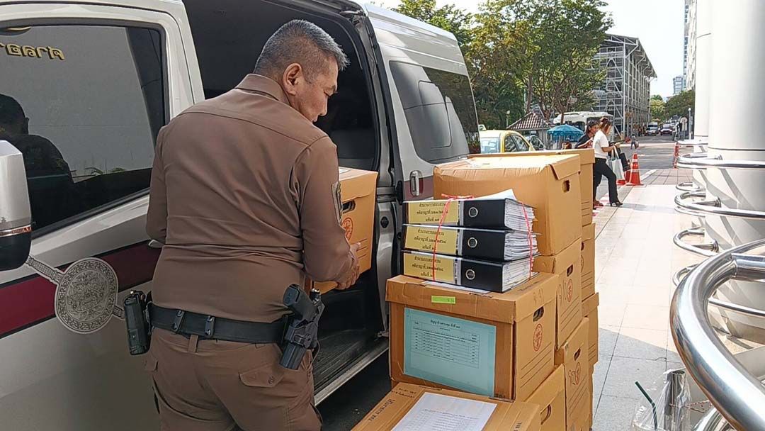 วันนี้ อัยการโจทก์นำโดย น.ส.สุภาภรณ์ นิปวนิชย์ หรือ “อัยการดาว” อัยการเจ้าของสำนวน พร้อมพนักงานสอบสวนขนสำนวนพยานหลักฐานเอกสารในคดีกว่า 50 ลัง ขึ้นไปห้องพิจารณาคดี