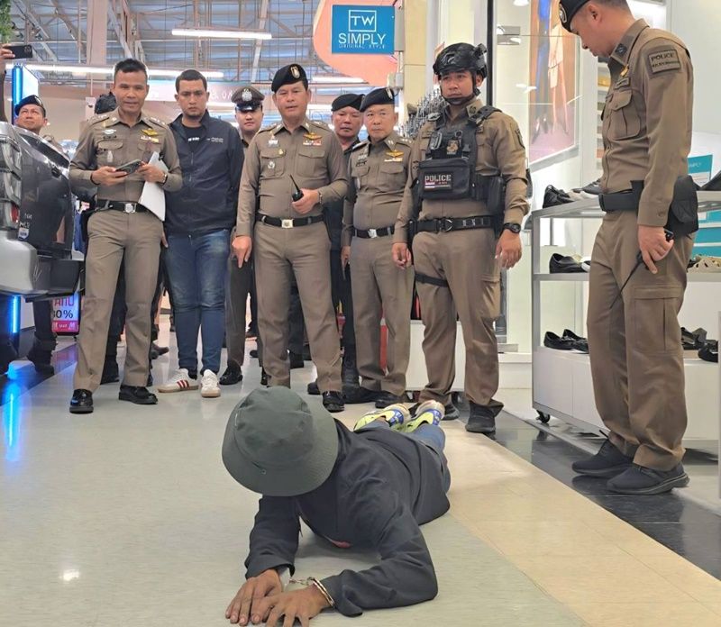 เมื่อเวลา 10.15 น.วันที่ 10 พ.ย.68 เจ้าหน้าที่ตำรวจ สภ.กระทุ่มแบน จังหวัดสมุทรสาคร ได้คุมตัวนายสมพงษ์ อยู่สุข อายุ 28 ปี คนร้ายก่อเหตุปล้นทองที่ห้างทอง ภายในห้างสรรพสินค้าโลตัส กระทุ่มแบน จ.สมุทรสาคร พร้อมของกลาง สร้อยคอและสร้อยข้อมือทองคำ รวมน้ำหนัก 55 บาท มูลค่ากว่า 3 ล้านบาท และอาวุธปืนที่ใช้ก่อเหตุ ไปทำแผนประกอบคำรับสารภาพ