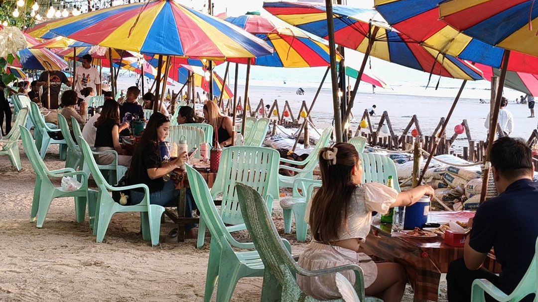 นายสกนท์ ภู่เจริญ อายุ 58 ปี ผู้ประกอบการร้านอาหารริมชายหาด กล่าวว่า โครงการคนละครึ่งพลัสช่วยให้มีลูกค้าชัดเจนมากขึ้น และเพิ่มช่องทางการขายให้ผู้ประกอบการ โดยเฉพาะช่วงวันเสาร์-อาทิตย์ ลูกค้าใช้สิทธิ์กันเยอะ ส่วนวันธรรมดาก็มีบ้างประปราย