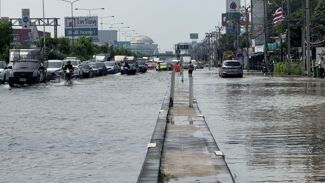 นนทบุรีวิกฤต! น้ำเจ้าพระยาเอ่อท่วมถนนนครอินทร์ 60 ซม. ทำจราจรติดขัดหนัก