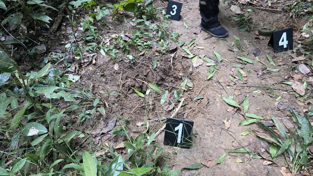 2. ชิ้นส่วนทุ่นระเบิดพีเอ็มเอ็น-2 อยู่ภายในหลุมและพื้นที่ใกล้เคียง