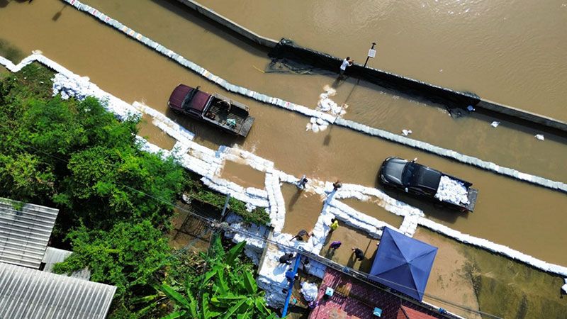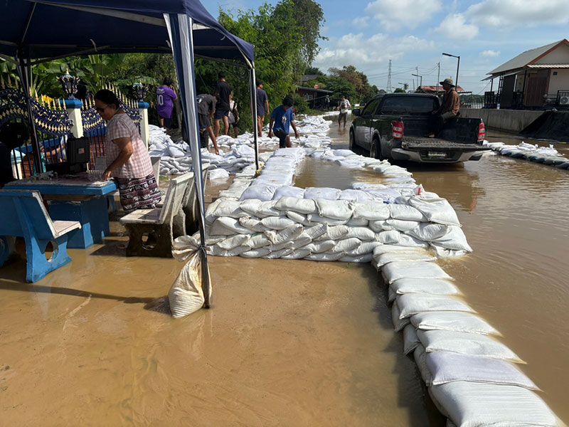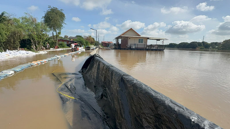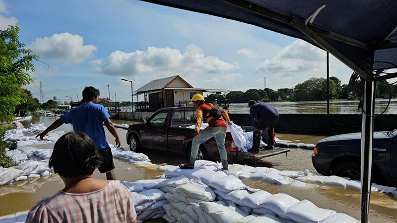 โดยทางเจ้าหน้าที่ อบต.ย่านซื่อ และหน่วยงานราชการเข้ามาระดมวางกระสอบทรายป้องกันน้ำไหลเข้ามาในหมู่บ้านกว่า 100 หลังคาเรือนที่ต้องเผิญกับสถานการน้ำที่วิกฤต น้ำเจ้าพระยาเพิ่มขึ้นอย่างต่อเนื่อง ร่วมเสมอคันกั้นน้ำที่วางกระสอบทายเพิ่มเติมและยังมีจุดรั่วซึมอีกหลายจุด