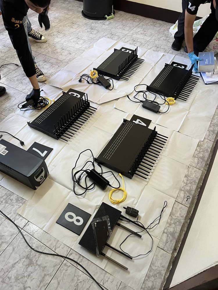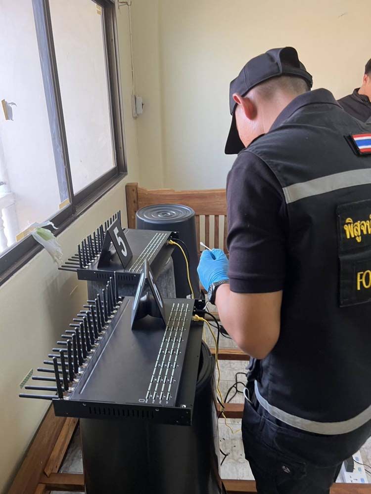 และเมื่อวันที่ 11 พฤศจิกายน 68 เวลา 10.00 น.ชุดปฏิบัติการตำรวจภูธรภาค 4 ร่วมกับ ตำรวจภูธรจังหวัดมุกดาหาร เข้าตรวจค้นตึกแถวห้องหนึ่งบริเวณสถานีขนส่งจังหวัดมุกดาหาร สืบเนื่องจากเจ้าหน้าที่ตำรวจได้รับแจ้งเบาะแสจากสายลับว่าที่ตึกห้องแถวบริเวณสถานีขนส่งจังหวัดมุกดาหาร จะมีการกระทำความผิดกฎหมาย จึงได้นำกำลังเข้าตรวจค้นตึกห้องแถวบริเวณสถานีขนส่งผู้โดยสารจังหวัดมุกดาหาร อำเภอเมือง จังหวัดมุกดาหาร ตามที่ได้รับแจ้ง ผลการตรวจค้นตึกห้องแถวดังกล่าว พบอุปกรณ์ซิมบ็อกซ์ จำนวน 4 เครื่อง พร้อมด้วยอุปกรณ์อิเล็กทรอนิกส์และอุปกรณ์ต่างๆ ที่ใช้ในการกระทำความผิด ไม่พบผู้เช่าตึก ส่วนผู้กระความผิดต่างๆ ทางเจ้าหน้าที่ตำรวจ, กสทช.และหน่วยงานที่เกี่ยวข้อง จะได้ทำการสืบสวนสอบสวนหาตัวผู้กระทำผิดมาดำเนินคดีตามกฎหมายต่อไป