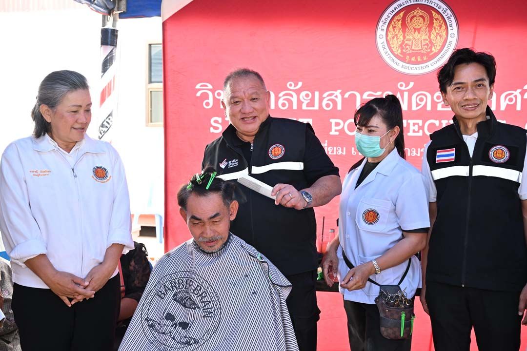 นายยศพล กล่าวต่อว่า วันนี้ สอศ. ได้ดำเนินกิจกรรม Fix it – อาชีวะจิตอาสา เรียบร้อยแล้ว พร้อมส่งมอบบ้านเรือนที่ซ่อมแซมแล้ว 24 หลัง พร้อมมอบถุงยังชีพ 570 ชุด ที่เป็นเครื่องอุปโภค บริโภค และอาหารกล่องพร้อมเครื่องดื่ม 500 ชุด ให้กับประชาชนที่ได้รับผลกระทบ รวมทั้งจัดครู นักเรียน นักศึกษาอาชีวะให้บริการซ่อมเครื่องใช้ไฟฟ้า เครื่องจักรกลการเกษตร และยานพาหนะ มอบพันธ์ุไม้-สอนตอนกิ่ง และฝึกอาชีพระยะสั้นให้กับประชาชนในพื้นที่ โดยกิจกรรมในครั้งนี้ได้รับการสนับสนุนงบประมาณจากเหล่ากาชาดศรีสะเกษ และสำนักงานป้องกันและบรรเทาสาธารณภัยจังหวัดศรีสะเกษ ดำเนินการนำไปช่วยเหลือผู้ประสบภัยพิบัติกรณีฉุกเฉินภัยอื่นๆ เป็นค่าวัสดุซ่อมแซมที่อยู่อาศัยประจำในพื้นที่จังหวัดศรีสะเกษ และเงินบริจาคจากผู้มีจิตศรัทธาทั้งในและนอกพื้นที่