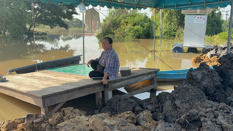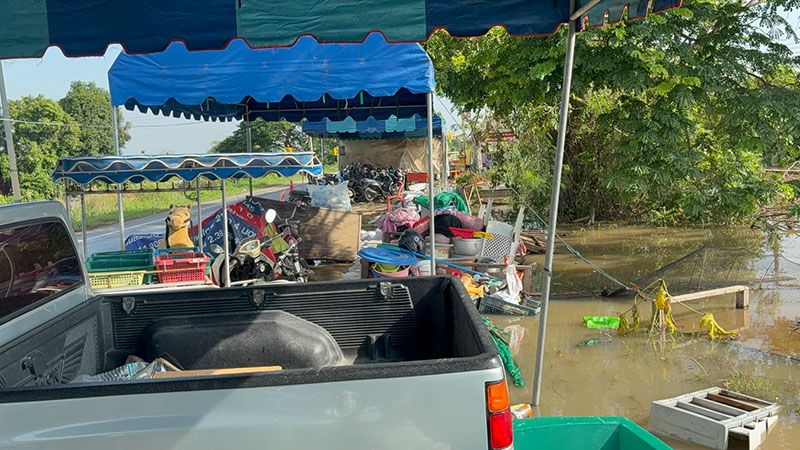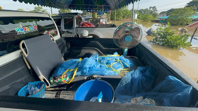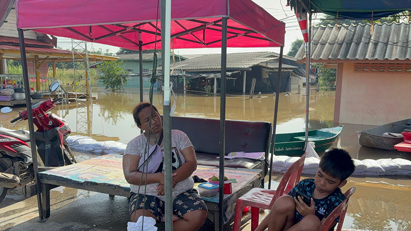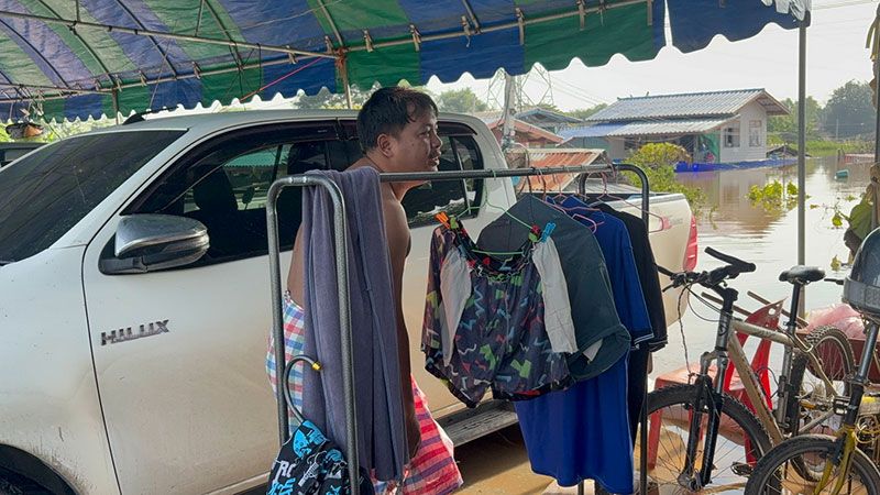 ด้าน นางวันเพ็ญ อายุ 45 ปี แม่ค้าขายรถพ่วงข้าง เล่าให้ฟังว่า ตนเคยขับรถเร่ขายของตามหมู่บ้าน แต่วันนี้รถจอดนิ่งกลางน้ำ ทุกเช้าต้องพายเรือออกไปหาเสบียง พอมีของจะขายก็แทบไม่มีใครซื้อ เพราะหลายคนเองก็ขาดรายได้ น้ำมันไม่ใช่แค่ท่วมบ้าน แต่มันท่วมชีวิตเราไปด้วย