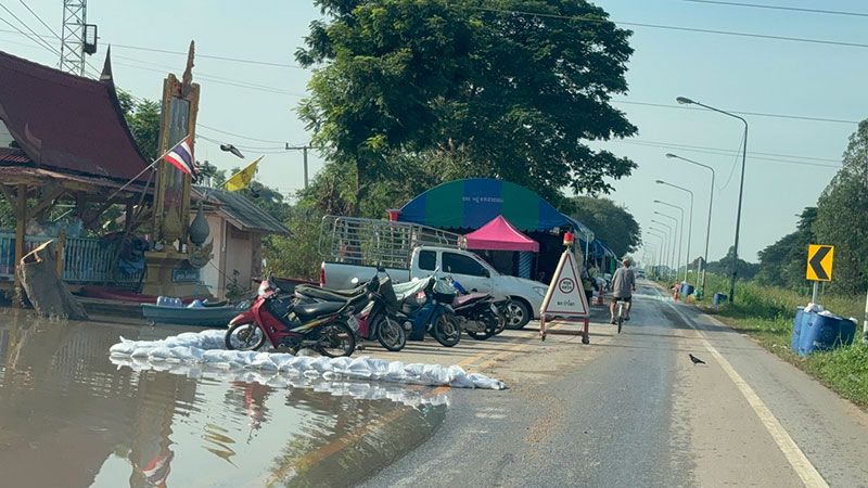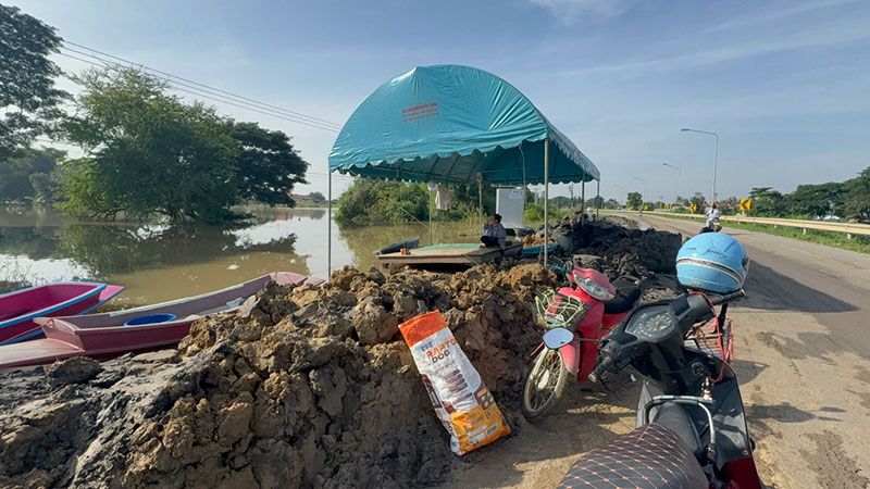 12 พฤศจิกายน 2568 ผู้สื่อข่าวรายงานบริเวณพื้นที่ตำบลโผงเผง อำเภอป่าโมก จังหวัดอ่างทอง กว่าสองเดือนแล้วที่ชาวตำบลโผงเผง ต้องใช้ชีวิตท่ามกลางสายน้ำที่ไม่รู้เมื่อไรจะลดลง บ้านเรือนหลายหลังเหลือเพียงหลังคาโผล่พ้นน้ำ บางครอบครัวต้องย้ายขึ้นมานอนบนริมถนน ท่ามกลางเสียงคลื่นซัดกระทบฝั่งและความมืดที่มีเพียงแสงไฟจากโซลาร์เซลล์ส่องอยู่ลิบๆ ทั้งคน ทั้งสุนัข และสัตว์เลี้ยง ต่างตกอยู่ในชะตากรรมเดียวกัน อยู่กับน้ำกินกับน้ำ ไม่รู้ว่าวันไหนจะได้กลับไปเหยียบพื้นบ้านของตัวเองอีกครั้ง