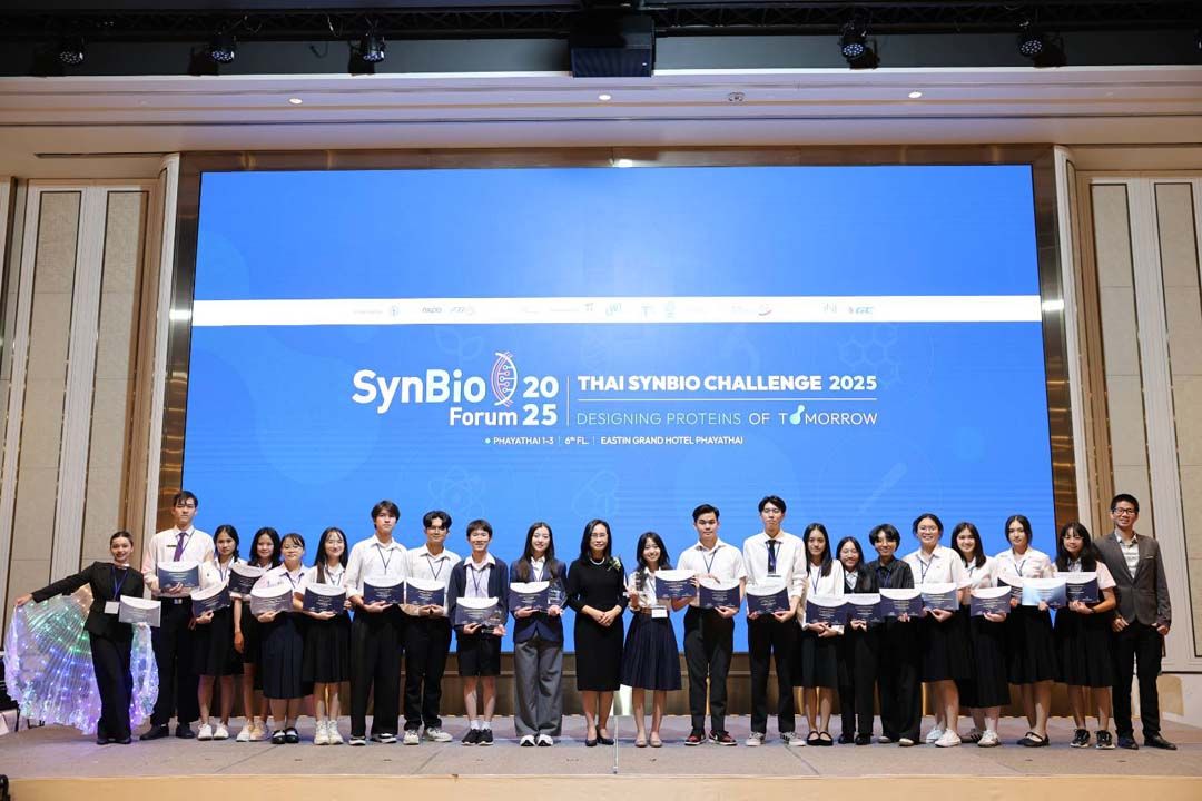 อีกหนึ่งกิจกรรมไฮไลต์ของงานปีนี้คือการแข่งขัน Thailand SynBio Challenge 2025: Designing the Protein for Tomorrow ที่เปิดเวทีให้นักศึกษาและนักวิจัยรุ่นใหม่จากทั่วประเทศ นำเสนอแนวคิดด้านชีววิทยาสังเคราะห์เพื่อออกแบบโปรตีนแห่งอนาคตที่ตอบโจทย์อุตสาหกรรมและความยั่งยืน โดยมีผู้สนใจเข้าร่วมส่งไอเดียประกวดกว่า 29 ทีม และมีทีมที่ผ่านการคัดเลือก จำนวน 9 ทีม จากมหาวิทยาลัยเกษตรศาสตร์ มหาวิทยาลัยมหิดล โรงเรียนกำเนิดวิทย์ มหาวิทยาลัยพะเยา โรงเรียนนิวตัน (The Newton Sixth Form School) จุฬาลงกรณ์มหาวิทยาลัย มหาวิทยาลัยธรรมศาสตร์ โรงเรียนสวนกุหลาบวิทยาลัย รังสิต และมหาวิทยาลัยเทคโนโลยีพระจอมเกล้าธนบุรี โดยผู้ชนะ 3 ทีมจะได้รับรางวัลเดินทางไปศึกษาดูงาน ณ สถาบันเทคโนโลยีขั้นสูงเซินเจิ้น (SIAT) เพื่อแลกเปลี่ยนองค์ความรู้และสร้างเครือข่ายกับนักวิจัยระดับนานาชาติ