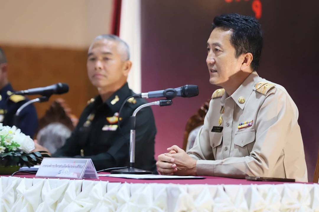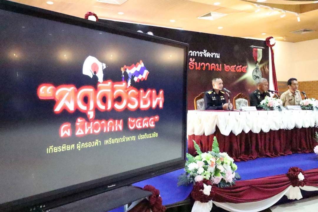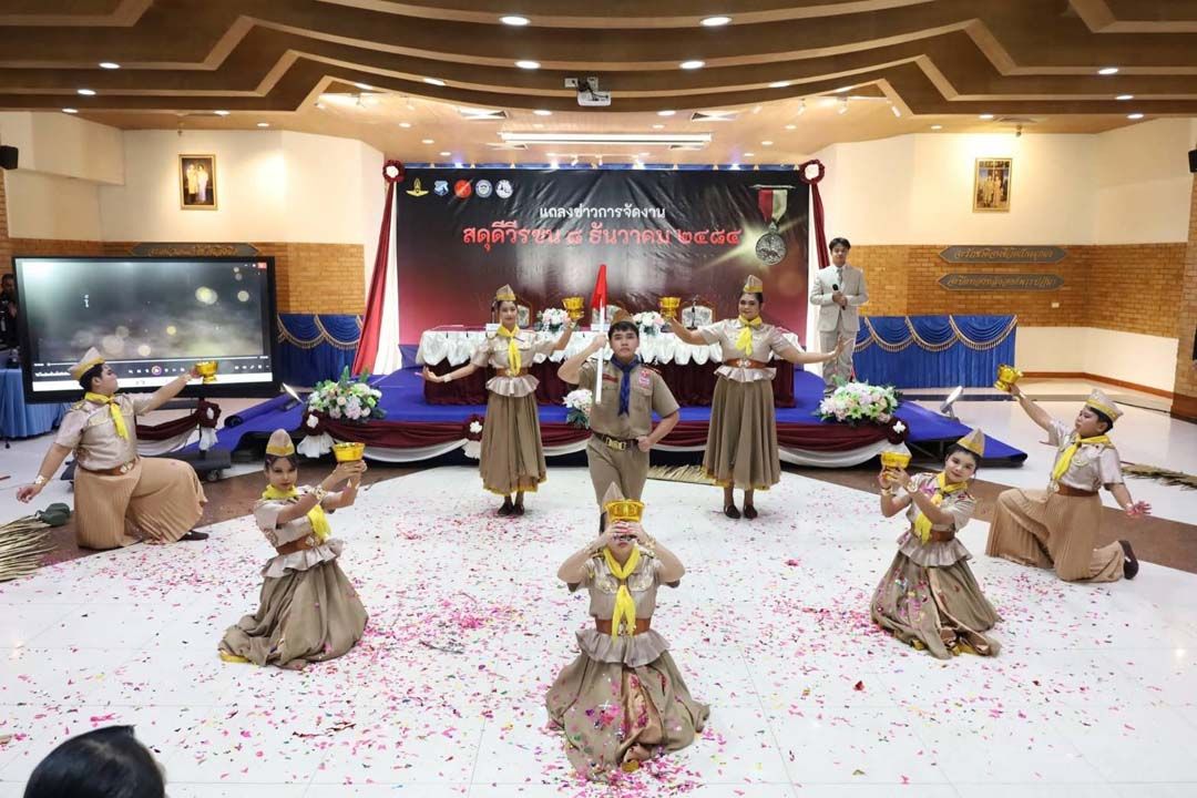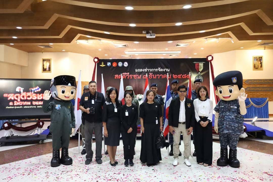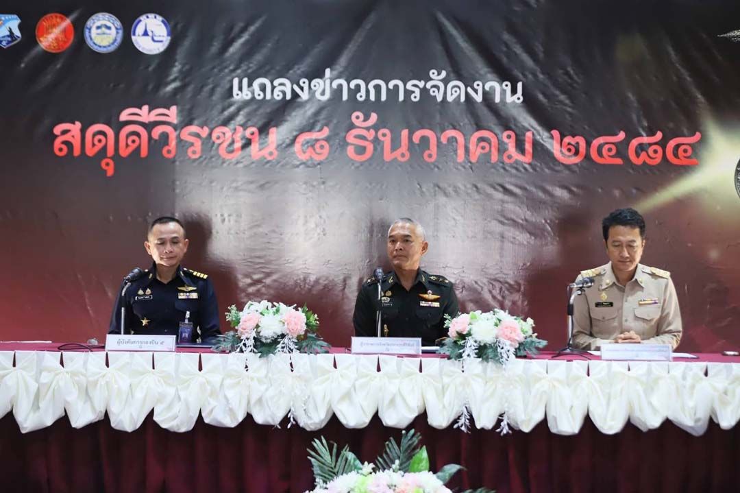 เมื่อวันที่ 12 พฤศจิกายน 2568 ที่ห้องดุสิตา อาคารอากาศคำรณ กองบิน 5 อำเภอเมือง จังหวัดประจวบคีรีขันธ์ พ.อ.วีระชัย ศิระสากร รองผู้อำนวยการรักษาความมั่นคงภายในจังหวัดประจวบคีรีขันธ์ (ผู้แทนผู้ว่าราชการจังหวัดฯ) พร้อมด้วย นาวาอากาศเอก รัตนศักดิ์ โพธิ์แก้ว ผู้บังคับการกองบิน 5 และนายสราวุธ ลิ้มอรุณรักษ์ นายกองค์การบริหารส่วนจังหวัดประจวบคีรีขันธ์ ร่วมแถลงข่าวการจัดงาน “สดุดีวีรชน 8 ธันวาคม 2484 ประจำปี 2568” โดยมีหัวหน้าส่วนราชการ ข้าราชการ ทหาร ตำรวจ และสื่อมวลชนเข้าร่วมอย่างคึกคัก