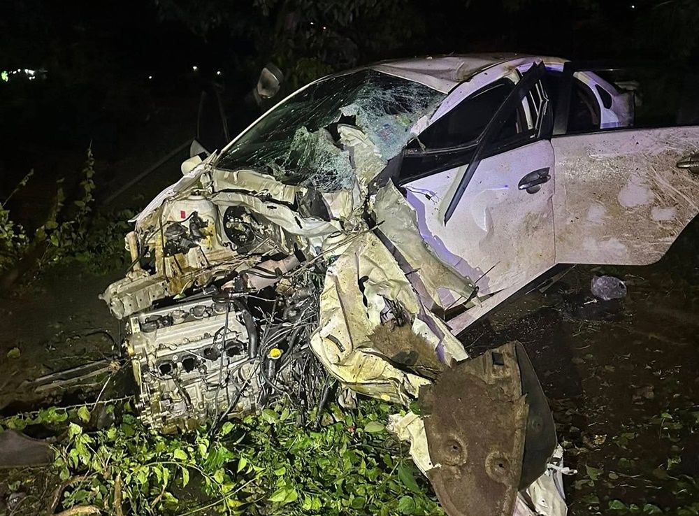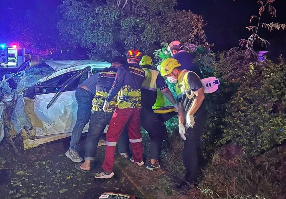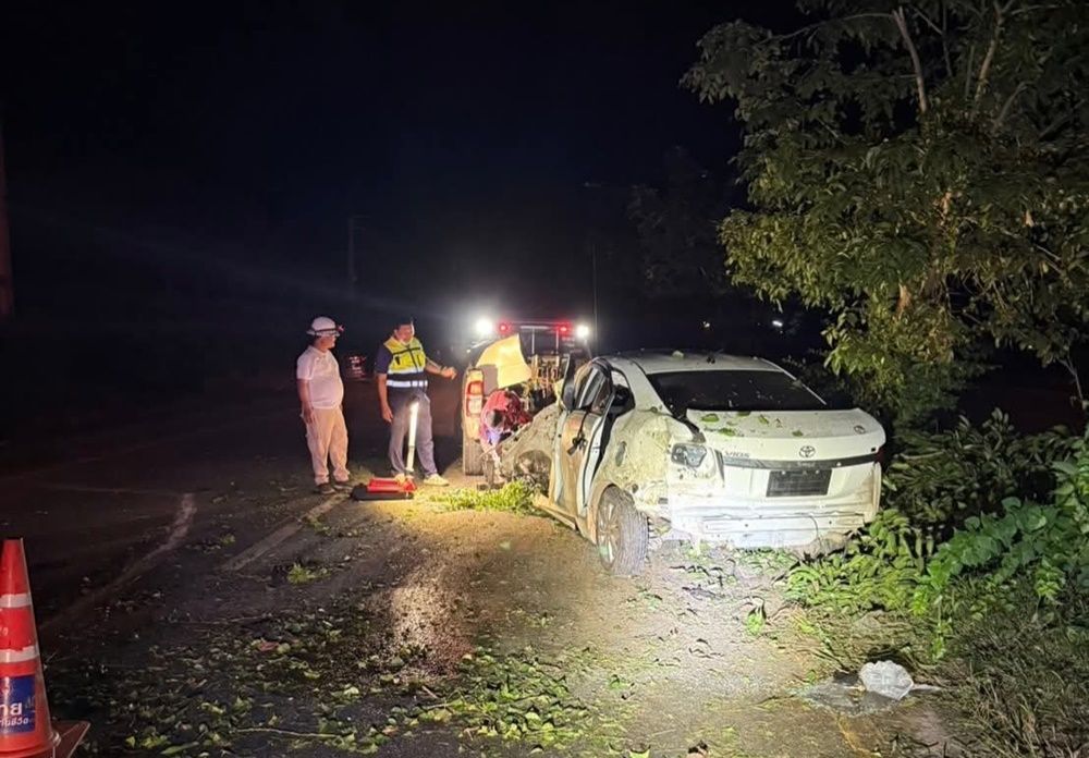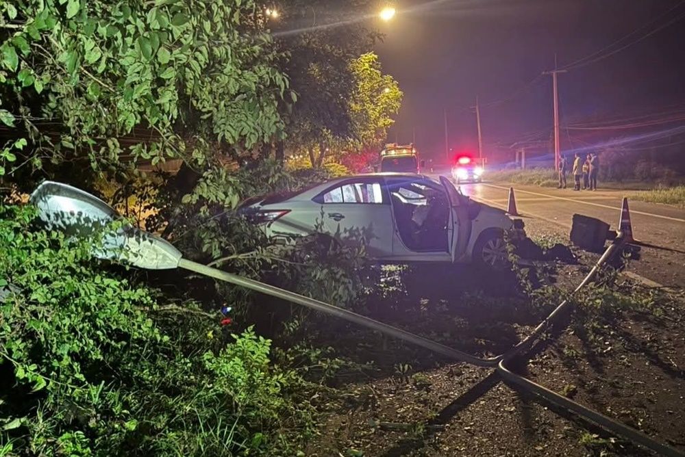 สาว 19 ซิ่งเก๋งกลางดึกเสียหลักชนเสาไฟหักโค่นเจ็บสาหัสคารถ