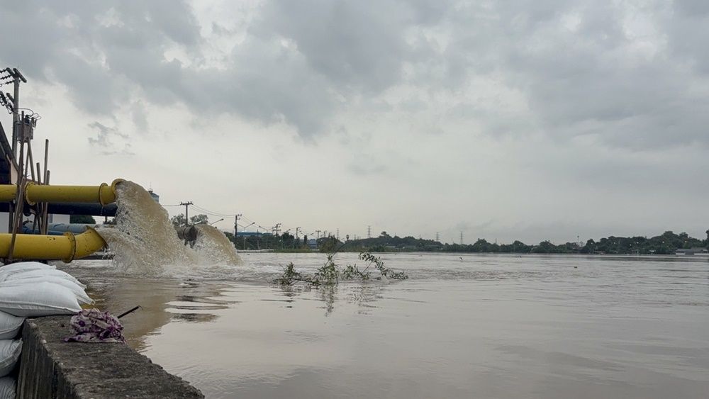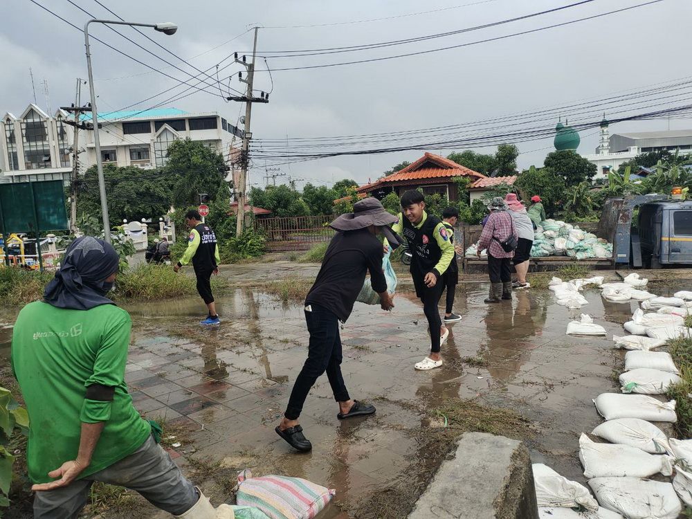 เทศบาลเมืองอ่างทองเร่งวางแบร์ริเออร์และอุดท่อน้ำทิ้ง ถนนเส้นสินพล -สวนน้ำยาวกว่า 2 กิโลเมตรรับสถานการณ์น้ำที่เอ่อล้นข้ามถนนพรหมบุรี ไหลลงทุ่งมุ่งหน้าสู่พื้นที่อ่างทอง ขณะที่พื้นเขื่อนริม 2 ฝั่งแม่น้ำเจ้าพระยายังคงวิกฤต