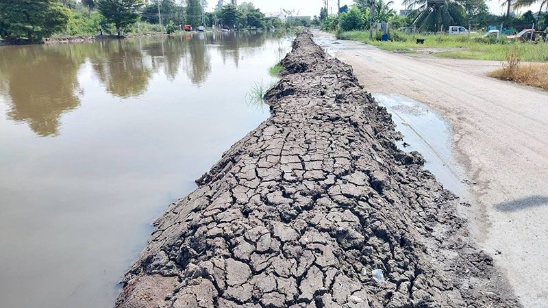 การเสริมคันกั้นน้ำในครั้งนี้ สืบเนื่องจากปริมาณน้ำในคลองขุดใหม่มีระดับสูงขึ้นอย่างต่อเนื่อง จนเกิดน้ำล้นตลิ่ง โดยคลองนี้เป็นคลองที่รับน้ำมาจากคลองพระยาบันลือ จ.พระนครศรีอยุธยา ผ่าน อ.ลาดบัวหลวง และ อ.ลาดหลุมแก้ว ซึ่งครอบคลุมพื้นที่ ต.บ่อเงิน, ต.ระแหง, ต.หน้าไม้ และ ต.ลาดหลุมแก้ว ซึ่งเป็นพื้นที่ลุ่มต่ำ