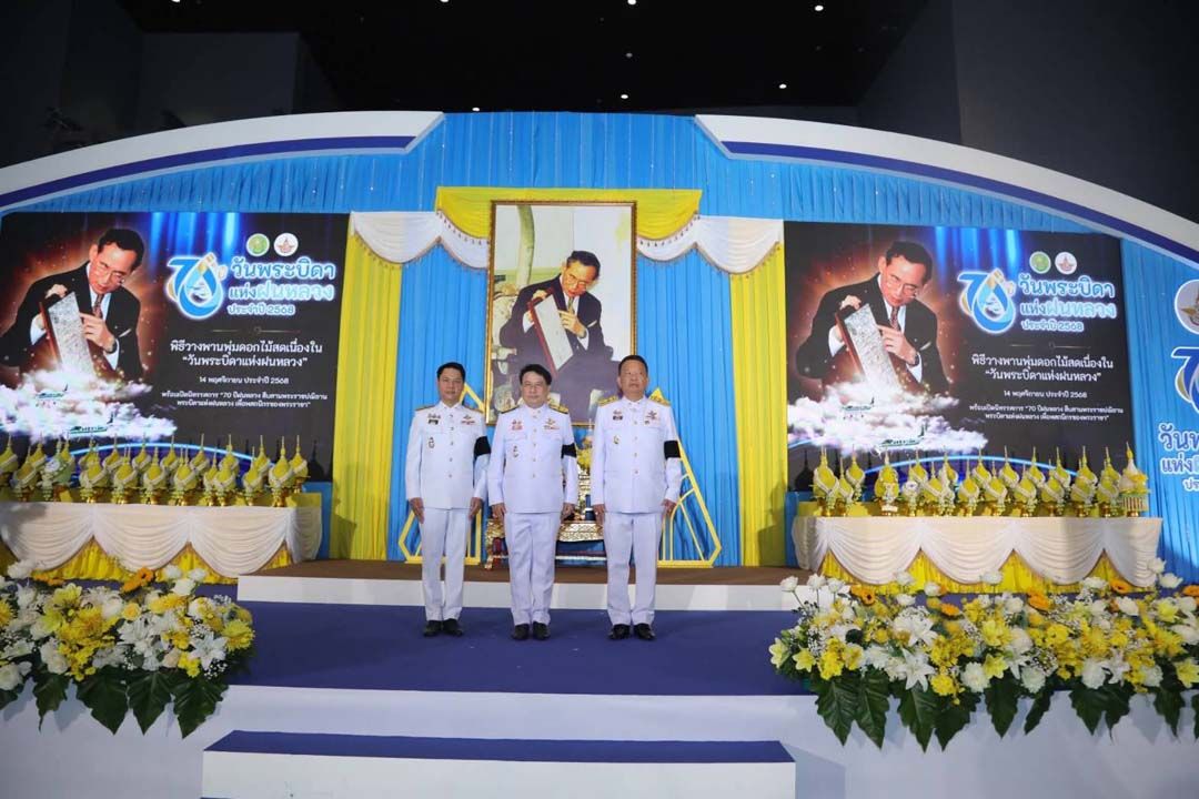 เมื่อวันที่ 14 พฤศจิกายน 2568 กระทรวงเกษตรและสหกรณ์ โดยกรมฝนหลวงและการบินเกษตร จัดพิธีวางพานพุ่มดอกไม้สดเนื่องใน “วันพระบิดาแห่งฝนหลวง ประจำปี 2568” ณ Jewel Hall ชั้น 5 ศูนย์การค้าสยามพารากอน กรุงเทพมหานคร เพื่อรำลึกถึงพระมหากรุณาธิคุณอันหาที่สุดมิได้ของ พระบาทสมเด็จพระบรมชนกาธิเบศร มหาภูมิพลอดุลยเดชมหาราช บรมนาถบพิตร ผู้ทรงเป็น “พระบิดาแห่งฝนหลวง” ที่ทรงริเริ่มโครงการพระราชดำริฝนหลวงเพื่อบรรเทาความเดือดร้อนของเกษตรกรและประชาชนทั่วประเทศโดยได้รับเกียรติจาก นายนเรศ ธำรงค์ทิพยคุณ รัฐมนตรีช่วยว่าการกระทรวงเกษตรและสหกรณ์ เป็นประธานในพิธี พร้อมด้วยนายกฤษ อุตตมะเวทิน รองปลัดกระทรวงเกษตรและสหกรณ์ นายราเชน ศิลปะรายะ อธิบดีกรมฝนหลวงและการบินเกษตร รวมถึงผู้บริหาร ข้าราชการในสังกัดกระทรวงเกษตรและสหกรณ์ ส่วนราชการ และอาสาสมัครฝนหลวง เข้าร่วมพิธีอย่างพร้อมเพรียง บรรยากาศภายในพิธี ประธานได้วางพานพุ่มดอกไม้สดถวายราชสักการะหน้าพระบรมฉายาลักษณ์พระบาทสมเด็จพระบรมชนกาธิเบศร มหาภูมิพลอดุลยเดชมหาราช บรมนาถบพิตร “พระบิดาแห่งฝนหลวง” และกล่าวรำลึกในพระมหากรุณาธิคุณ ที่พระองค์ทรงอุทิศพระวรกายและพระปรีชาสามารถในการคิดหาวิธีในการบังคับเมฆให้เกิดเป็นเม็ดฝน ที่ก่อให้เกิดประโยชน์ต่อการเกษตรและการบริหารจัดการทรัพยากรน้ำในชั้นบรรยากาศของประเทศมาตลอดระยะเวลา 70 ปีที่ผ่านมา จากนั้นรัฐมนตรีช่วยว่าการกระทรวงเกษตรและสหกรณ์ มอบรางวัลอาสาสมัครฝนหลวงดีเด่น ประจำปี 2568 จำนวน 5 รางวัล เพื่อเชิดชูบุคคลผู้มีส่วนสำคัญในการสนับสนุนภารกิจปฏิบัติการฝนหลวงทั่วประเทศ และเป็นการสร้างแรงบันดาลใจให้กับคนรุ่นใหม่ ที่มีความสนใจเข้ามามีส่วนร่วมในการสืบสานพระราชปณิธานแห่งพระบิดาแห่งฝนหลวง นอกจากนี้ รัฐมนตรีช่วยว่าการกระทรวงเกษตรและสหกรณ์ ได้เปิดนิทรรศการ “70 ปีฝนหลวง สืบสานพระราชปณิธานพระบิดาแห่งฝนหลวง เพื่อพสกนิกรของพระราชา” ซึ่งจัดแสดงเรื่องราวพระอัจฉริยภาพของในหลวงรัชกาลที่ 9 ตลอดจนพัฒนาการของเทคโนโลยีฝนหลวงที่กรมฝนหลวงและการบินเกษตร ได้พัฒนาต่อยอดอย่างต่อเนื่อง เพื่อสร้างความมั่นคงทางน้ำให้กับประเทศ