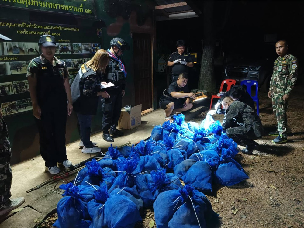เมื่อวันที่ 14 พ.ย. 68 ที่ผ่านมา หน่วยเฉพาะกิจอรัญประเทศ กองกำลังบูรพา ร่วมกับชุดควบคุมกรมทหารพรานที่ 12 นำกำลังพล ร้อย.ทพ.1204 ร่วมกับ ฉก.อรัญประเทศ ออกทำลาดตระเวนบริเวณช่องทางธรรมชาติ (ไร่อ้อย) ริมชายแดน ท้ายหมู่บ้านโนนพัฒนา อ.อรัญประเทศ จ.สระแก้ว ได้ตรวจพบรถยนต์กระบะต้องสงสัยยี้ห้อ Toyota Revo สีเทาดำ ทะเบียน นครสวรรค์ ขับเข้ามาจอดบริเวณแนวชายแดน โดยมีชายไทย 2 คน ลงมาขน ถุงตาข่ายสีฟ้าจำนวนมาก ลงมาวางไว้ แล้วรีบขับรถหลบหนีเมื่อเห็นเจ้าหน้าที่ชุดลาดตะเวณ