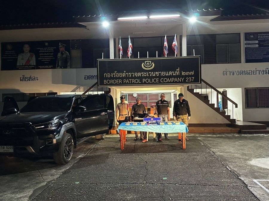 วันที่ 15 พ.ย.68 กองร้อยตำรวจตระเวนชายแดนที่ 237 (ร้อย ตชด.237) ต.ไชยบุรี อ.ท่าอุเทน จ.นครพนม พ.ต.ท.เรวัฒ จำปาน ผบ.ร้อย ตชด.237 แถลงการณ์จับกุมผู้ต้องหา 1 ราย พร้อมตรวจยึดยาบ้า 79,800 เม็ด และรถยนต์กระบะ 1 คัน เหตุเกิดบริเวณริมแม่น้ำโขง บ้านท่าจำปาหมู่ 1 ต.ท่าจำปา อ.ท่าอุเทน จ.นครพนม เวลาประมาณ 19.00 น.วันที่ 14 พ.ย.68 ที่ผ่านมา โดย ร.ต.อ.จรณ์ แก้วคำแสน หัวหน้าชุดปฏิบัติการข่าวฯ (หน.ชปข.ร้อย ตชด. ที่ 237) ได้รับแจ้งจากแหล่งข่าวว่า จะมีการลำเลียงยาเสพติดจากประเทศเพื่อนบ้านเข้าในราชอาณาจักรไทย ในพื้นที่ ต.ท่าจำปา จึงนำกำลังจำนวนหนึ่ง ร่วมกับหน่วยงานความมั่นคงในพื้นที่ซุ่มเฝ้าดูการเคลื่อนไหว กระทั่งพลบค่ำมีเรือหางยาวแล่นข้ามแม่น้ำโขงจากฝั่งประเทศเพื่อนบ้าน จอดเทียบท่าริมตลิ่งบ้านท่าจำปาหมู่ 1 ต.ท่าจำปา โดยคนขับเรือได้โยนวัตถุต้องสงสัยกองอยู่ริมตลิ่ง จากนั้นก็เร่งเครื่องเรือขับแล่นกลับไป โดยใช้เวลาเพียง 1 นาทีเท่านั้น