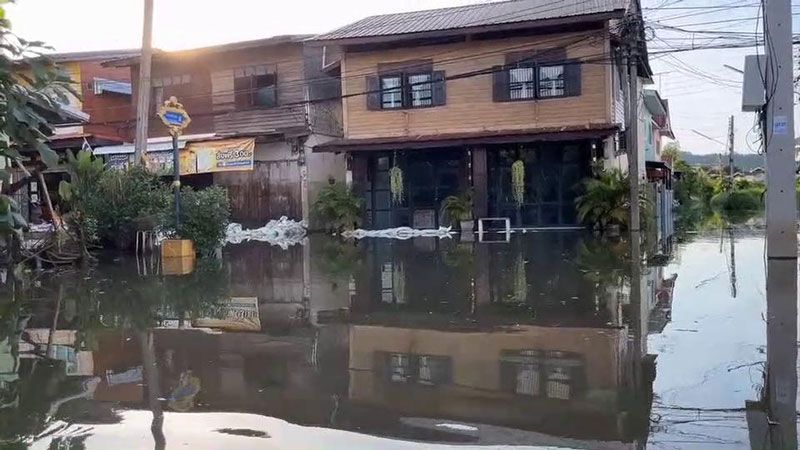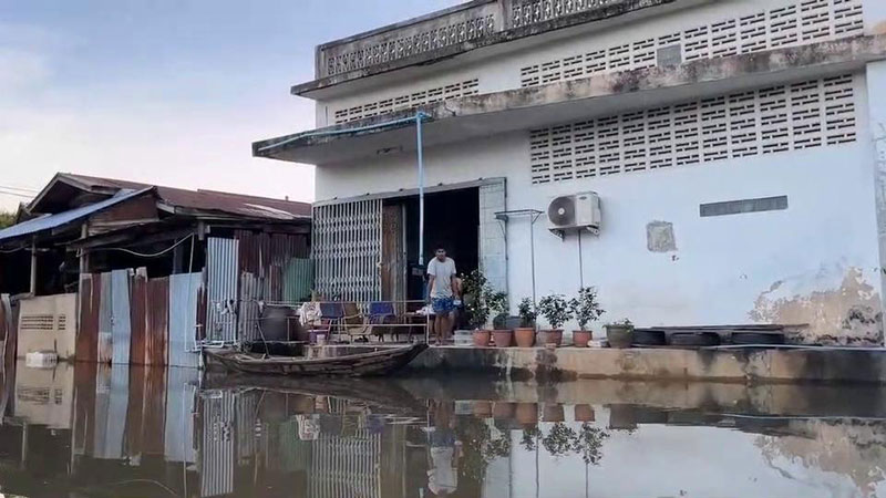 โดยเฉาะที่ลุ่มต่ำริมแม่น้ำ เช่น ชุมชนย่านวัดธรรมโสภิต ชุมชนคลองลึก ชุมชนท่าแร่ ระดับน้ำท่วม 50-100 เซนติเมตร ที่ไม่เลื่อนไหลถ่ายเท ทำให้เกิดน้ำเน่าเสีย