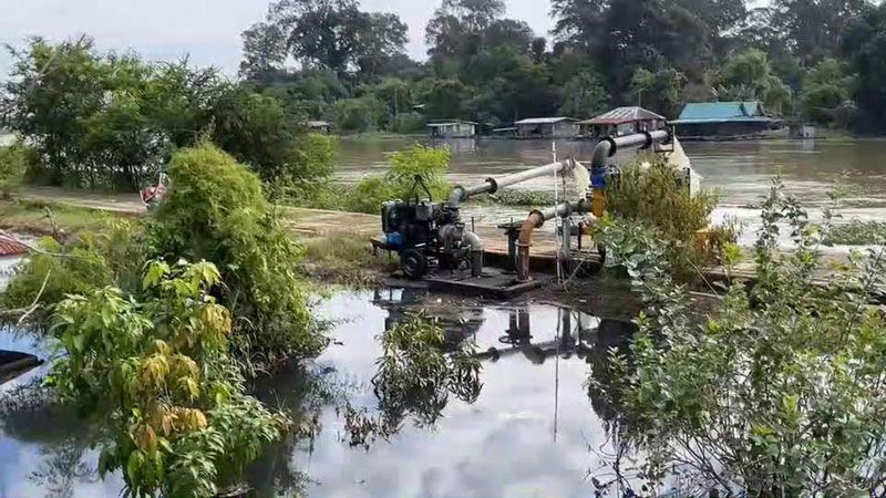 ในขณะที่เทศบาลก็พยายามใช้เครื่องสูบน้ำขนาดใหญ่จำนวนหลายเครื่อง ตลอดแนวแมน่น้ำสะแกกรัง ทำการสูบน้ำที่ท่วมขังระบายลงสู่แม่น้ำสะแกกรัง เพื่อหลังบรรเทาปัญหาแล้ว.