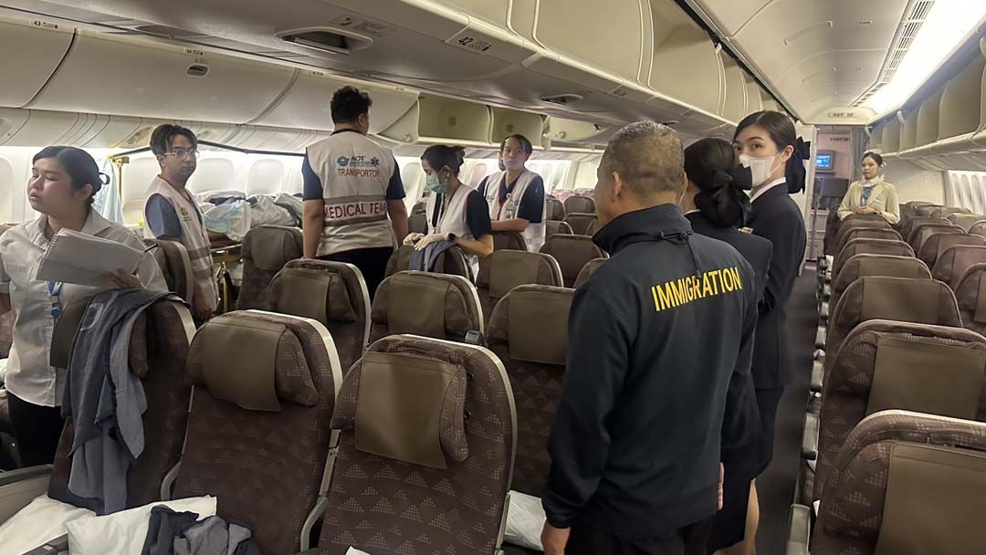 ด้าน พ.ต.อ.พงศ์ธร พงศ์รัชตนันทน์ รอง ผบก.ตม.2 ในฐานะโฆษก บก.ตม.2 เปิดเผยว่า ด่าน ตม.ทอ.สุวรรณภูมิ ได้ประสานงานร่วมกับกระทรวงการต่างประเทศ และบริษัท ท่าอากาศยานไทย จำกัด (มหาชน) อย่างใกล้ชิดตั้งแต่ก่อนเครื่องบินเดินทางถึงประเทศไทย เพื่อเตรียมความพร้อมรองรับผู้ป่วยซึ่งต้องได้รับการดูแลทางการแพทย์อย่างต่อเนื่อง