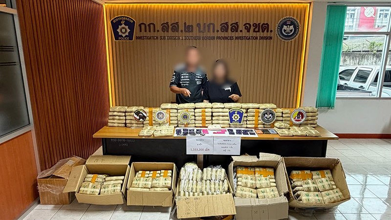 ตำรวจไล่สกัดจับ แก๊งลำเลียงยาเสพติดลงพื้นที่ 3 จังหวัดชายแดนภาคใต้ สุดท้ายต้องไล่ตะครุบกันริมถนน ก่อนยึดของกลางได้ 1.3 ล้านเม็ด