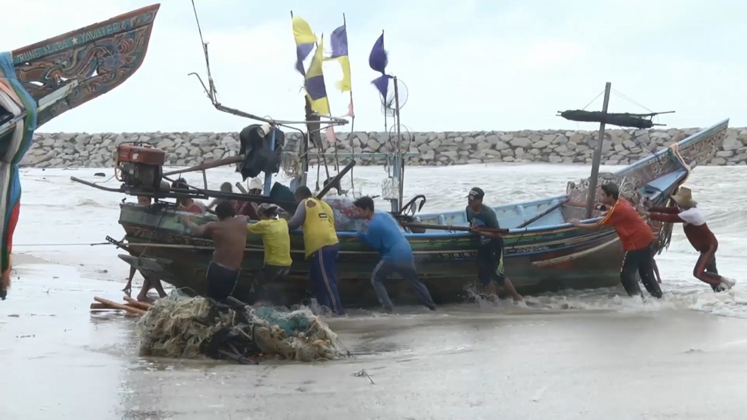 ล่าสุดวันนี้ (17 พ.ย.) ที่บริเวณชายฝั่งจังหวัดสงขลา โดยเฉพาะที่บ้านบ่ออิฐ ต.เกาะแต้ว อ.เมือง จ.สงขลา คลื่นลมแรงได้พัดเข้าหาฝั่งอย่างต่อเนื่อง ทำให้ชาวประมงพื้นบ้านต้องหยุดออกเรือทุกราย และนำเรือทุกลำมาจอดเรียงรายขึ้นมาจนติดถนน เพื่อรอให้คลื่นลดความรุนแรงลง ซึ่งคาดว่าจะสามารถกลับไปทำการประมงได้อีกครั้งในช่วงประมาณวันที่ 24 พฤศจิกายน 2568