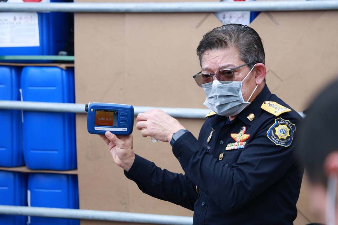 สืบเนื่องจากสำนักงาน ป.ป.ส.ได้รับการประสานงานการข่าวจากกรมศุลกากร ซึ่งเฝ้าระวังการนำเข้าสารเคมีที่สามารถนำไปใช้ในการผลิตยาเสพติดผ่านทางท่าเรือ จึงได้ประสานไปยังกรมโรงงานอุตสาหกรรม เพื่อตรวจสอบข้อมูลดังกล่าว พบว่ามีบริษัทที่นำเข้าสารเคมีกรดอาเซติก (Acetic Acid) จำนวน 740 ถัง บรรจุถังละ 30 กิโลกรัม น้ำหนักรวม 22,200 กิโลกรัม นำเข้ามาจากเขตบริหารพิเศษฮ่องกงแห่งสาธารณรัฐประชาชนจีน เข้ามาประเทศไทย ณ ด่านศุลกากรท่าเรือแหลมฉบัง จ.ชลบุรี โดยไม่มีใบอนุญาตนำเข้า และไม่มีการขึ้นทะเบียนจากกรมโรงงานอุตสาหกรรม