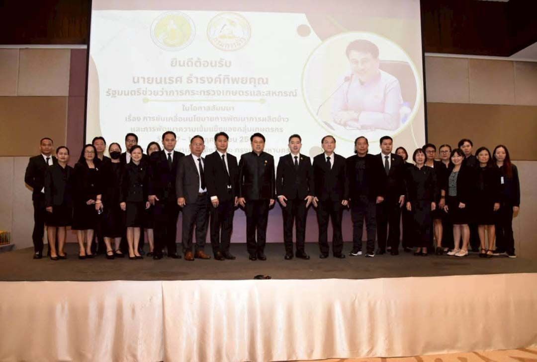 เมื่อวันที่ 17 พฤศจิกายน 2568 นายนเรศ ธำรงค์ทิพยคุณ รัฐมนตรีช่วยว่าการกระทรวงเกษตรและสหกรณ์ เป็นประธานพิธีเปิดการสัมมนา เรื่อง การขับเคลื่อนนโยบายการพัฒนาการผลิตข้าวและการพัฒนาความเข้มแข็งของกลุ่มเกษตรกร พร้อมกล่าวมอบนโยบายและข้อเสนอแนะการพัฒนาการผลิตและการตลาดข้าวของไทย โดยมี นายอานนท์ นนทรีย์ อธิบดีกรมการข้าว และผู้บริหารกรมการข้าว เข้าร่วม ณ โรงแรมทีเค พาเลซ กรุงเทพมหานคร มีวัตถุประสงค์เพื่อให้เกิดการบูรณาการเชิงนโยบายและปฏิบัติในภาคการผลิตข้าวอย่างเป็นระบบ ครอบคลุมตั้งแต่การผลิตผ่านการตลาดจนถึงการเพิ่มศักยภาพเกษตรกร โดยมีสาระสำคัญ คือ 1) เพื่อถ่ายทอดทิศทางนโยบายของรัฐบาล กระทรวงเกษตรและสหกรณ์ และกรมการข้าว ให้แก่ผู้ปฏิบัติงานทุกระดับอย่างชัดเจน 2) เพื่อทบทวนผลการดำเนินงานที่ผ่านมา วิเคราะห์อุปสรรคในระดับพื้นที่ และร่วมกำหนดแนวทางแก้ไขปัญหา 3) เพื่อพัฒนาศักยภาพศูนย์ข้าวชุมชนและกลุ่มนาแปลงใหญ่ให้มีความเข้มแข็งและสามารถดำเนินงานได้ด้วยตนเอง 4) เพื่อแลกเปลี่ยนองค์ความรู้และเทคโนโลยีใหม่ในภาคการผลิตข้าว เช่น เมล็ดพันธุ์คุณภาพ เทคโนโลยีดิจิทัล การลดต้นทุน และการเชื่อมโยงตลาด และ 5) เพื่อพัฒนากลไกความร่วมมือระหว่างหน่วยงานภาครัฐ ภาคเอกชน สถาบันเกษตรกร และเครือข่ายพันธมิตรอย่างเป็นรูปธรรม
