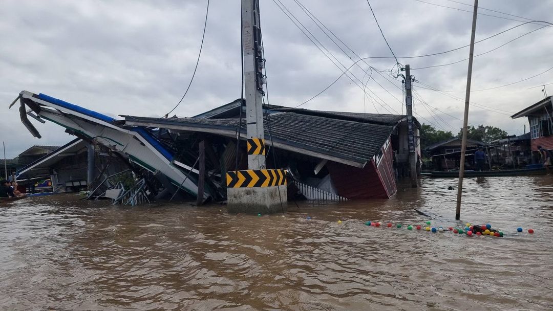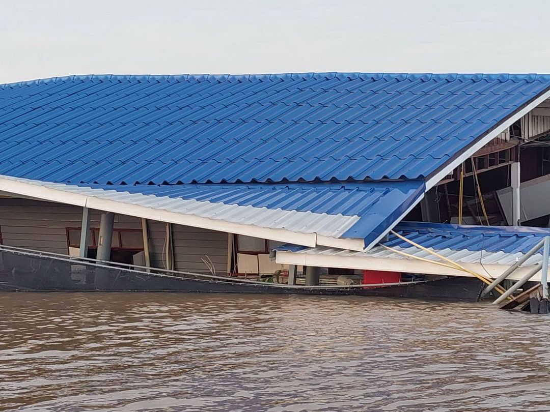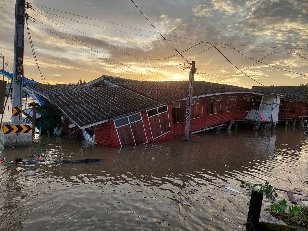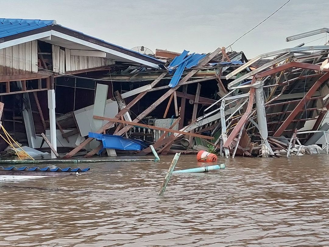 โครมเดียวพังยับ! ‘เรือหัวลาก’ เสียหลักชนบ้านริมน้ำเกาะเกร็ด เสียหาย 3 หลัง