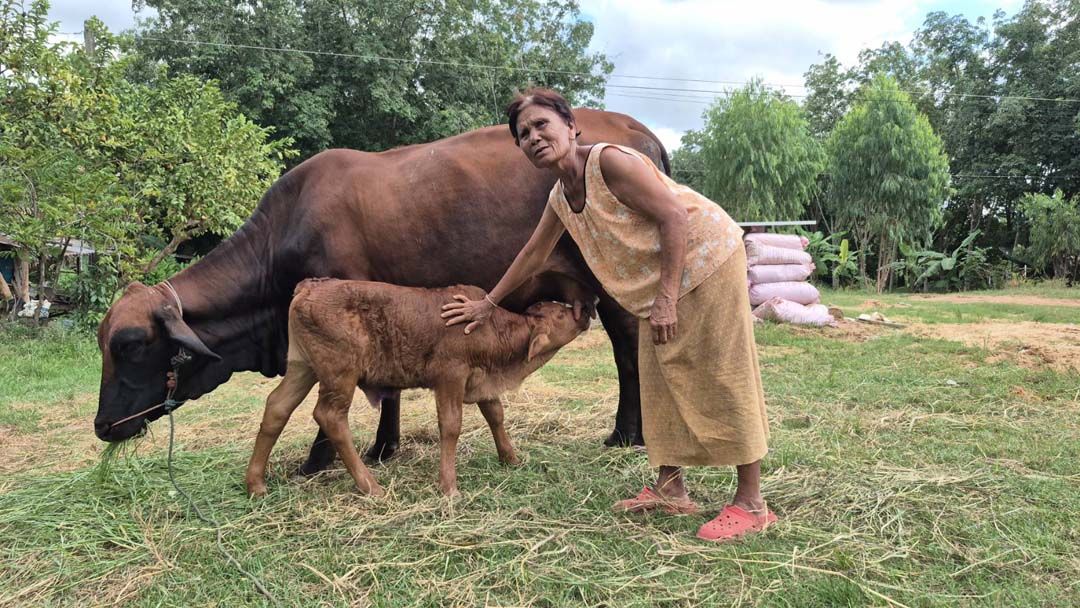 แต่บนความวุ่นวาย ยังมีความน่ารัก โดยคุณยายแจว จันทร์เหล่าหลวง อายุ 74 ปี ชาวอำเภอบ้านกรวด จ.บุรีรัมย์ ซึ่งอาศัยอยู่ในหมู่บ้านที่เสี่ยงภัยจากความตึงเครียดไม่แตกต่างจากคนอื่น แต่มีเรื่องราวให้สร้างความดีใจให้กับคนในครอบครัว เพราะวัวเพศเมียสายพันธุ์บีฟมาสเตอร์ ชื่อ “ตาดำ” ที่ครอบครัวเลี้ยงเอาไว้เพิ่งจะคลอดลูกตัวแรก ได้ประมาณ 2 สัปดาห์ เป็นลูกวัวเพศผู้ ซึ่งคลอดอยู่หน้าบังเกอร์หรือหลุมหลบภัยของครอบครัว