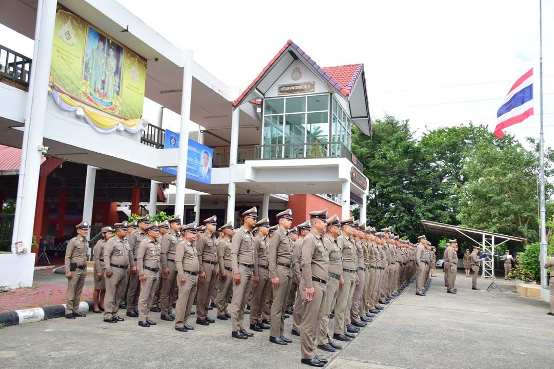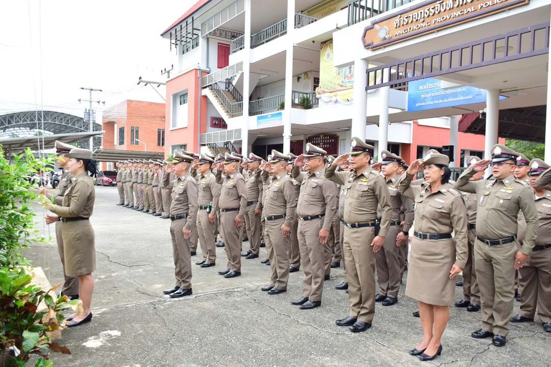 ‘ผู้การตำรวจอ่างทอง’นำตำรวจในสังกัดยืนสงบนิ่ง ถวายความอาลัย‘สมเด็จพระพันปีหลวง’