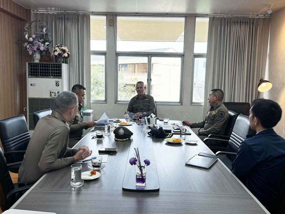 พล.ต.ต.ภูมินทร์ สิงหสุต ผบก.ภ.จว.สมุทรปราการ , พ.ต.อ.ประภาส มั่งคั่ง รอง ผบก.ภ.จว.สมุทรปราการ , พ.ต.อ.จักรกฤช ศรีโรจนากูร ผกก.สภ.เมืองสมุทรปราการ และ พ.ต.ท.จิฑาวัฒน์ ประสงค์กุล รอง ผกก.(สอบสวน)ฯ ปฏิบัติราชการ กก.สส.ภ.จว.สมุทรปราการ พร้อมตำรวจที่เกี่ยวข้อง ร่วมต้อนรับ และบรรยายสรุป