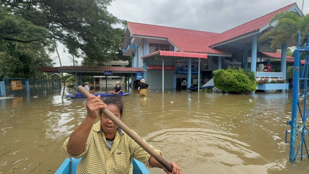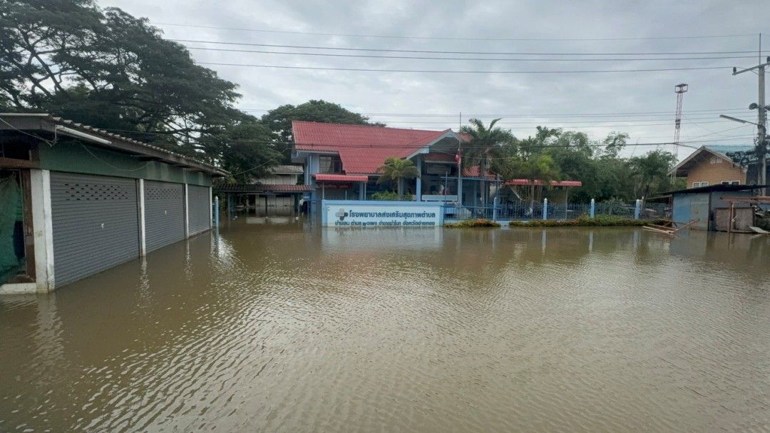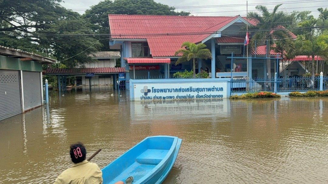 วันที่ 19 พฤศจิกายน 2568 ผู้สื่อข่าวรายงานว่า สถานการณ์น้ำท่วมที่โรงพยาบาลส่งเสริมสุขภาพตำบลบ้านเลน ตำบลโผงเผง อำเภอป่าโมก จังหวัดอ่างทอง น้ำยังคงท่วมสูงกว่า 1 เมตร โดยน้ำได้ทะลักเข้าท่วมพื้นที่หมู่บ้านและโรงพยาบาลฯ ตั้งแต่วันที่ 7 พฤศจิกายนที่ผ่านมา หลังคันกั้นน้ำในคลองโผงเผง ซึ่งเป็นสาขาของแม่น้ำเจ้าพระยาได้พังทลายลง