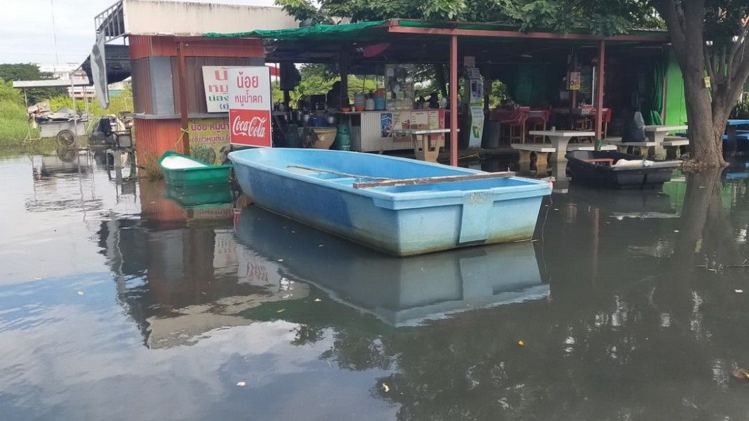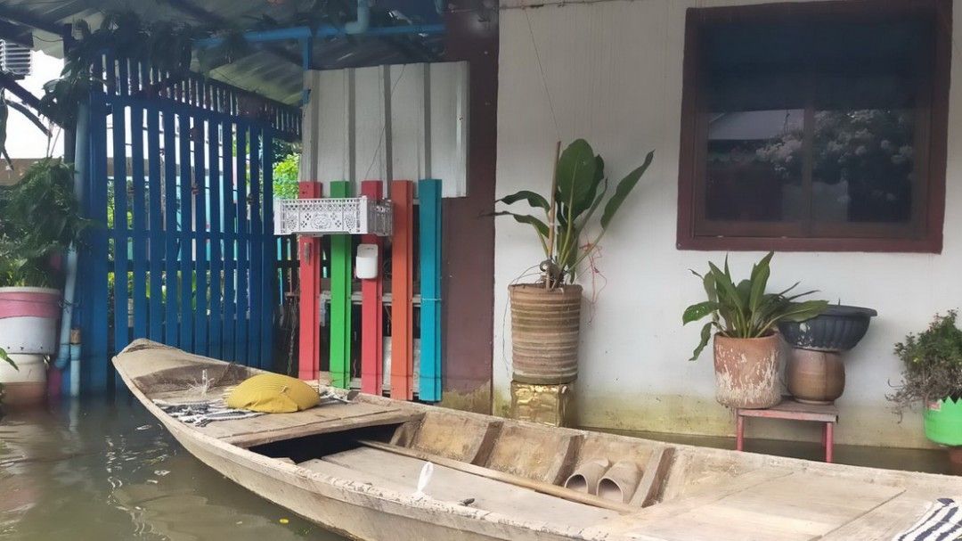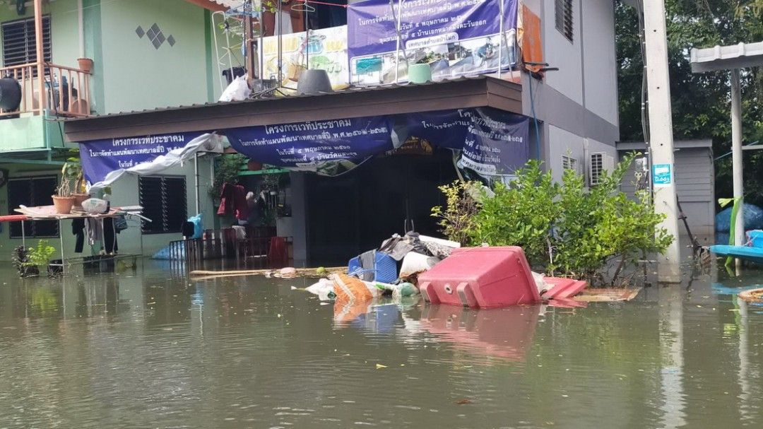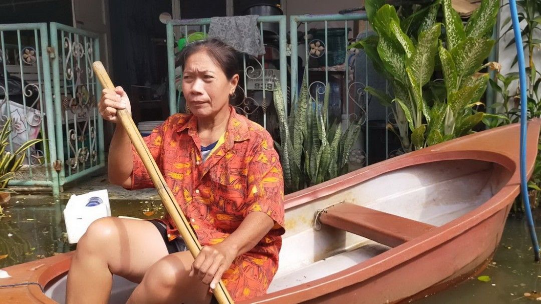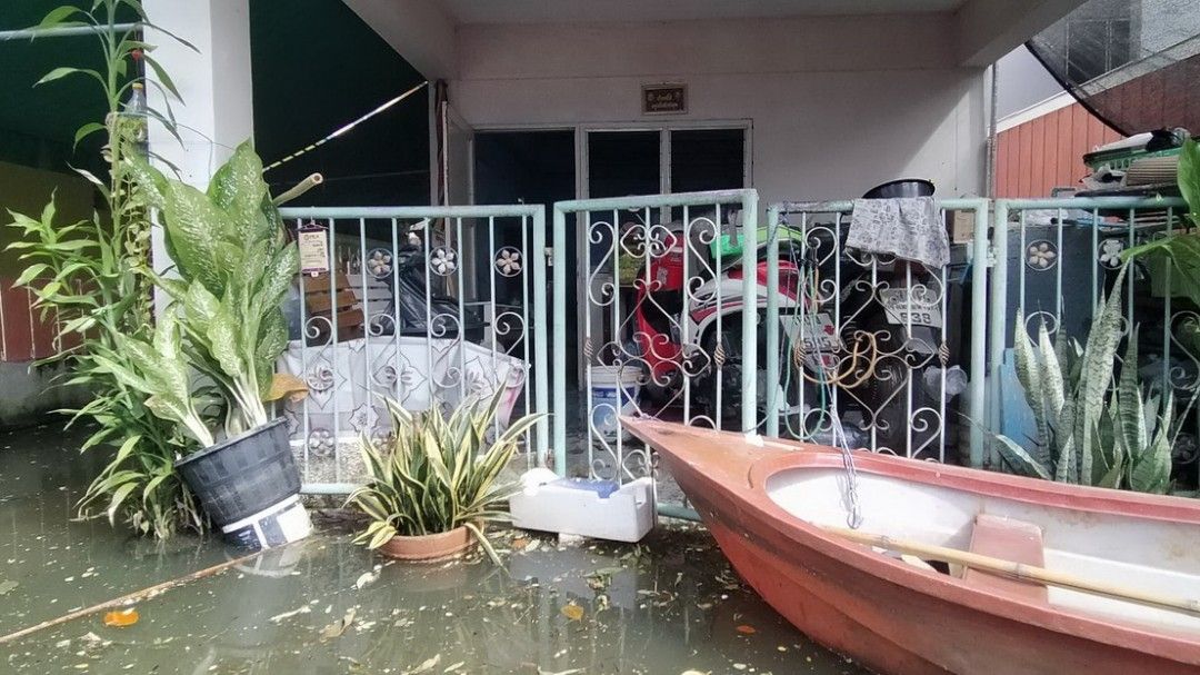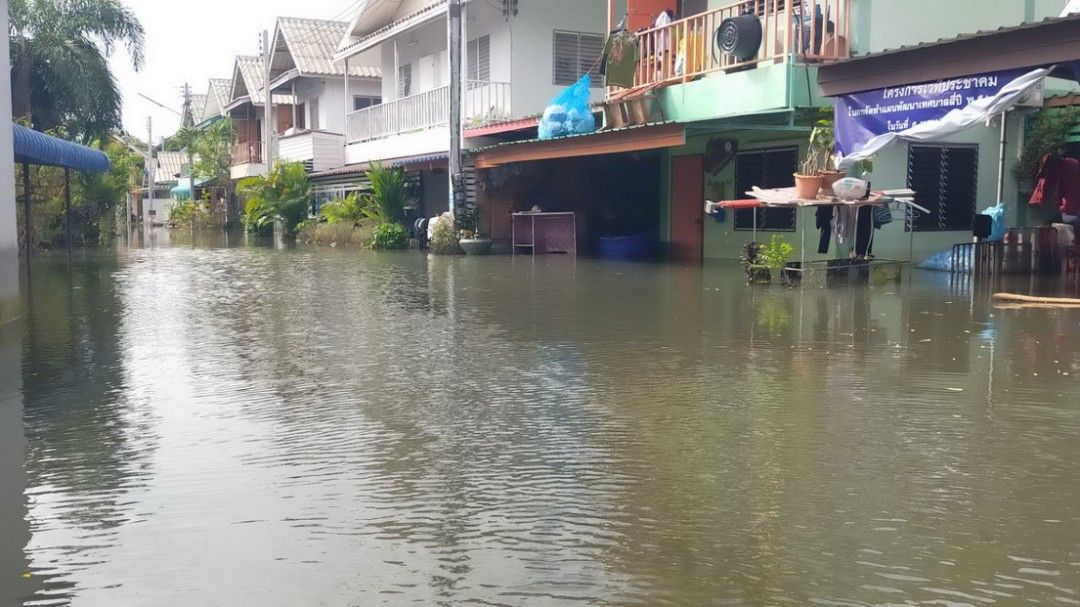 ป้าบุปผา อายุ 63 ปี ชาวบ้านในพื้นที่ เล่าว่า นับตั้งแต่มีการสร้างบ้านมั่นคง ชุมชนแห่งนี้ไม่เคยประสบปัญหาน้ำท่วมมาก่อน เพิ่งจะท่วมปีนี้เป็นปีแรก และสิ่งที่น่าเป็นห่วงคือ ตอนนี้น้ำเริ่มมีสีดำและเน่าเหม็น ทำให้ชาวบ้านหวาดกลัวเรื่องน้ำกัดเท้า แต่ก็ต้องทนรอจนกว่าน้ำจะลดลง