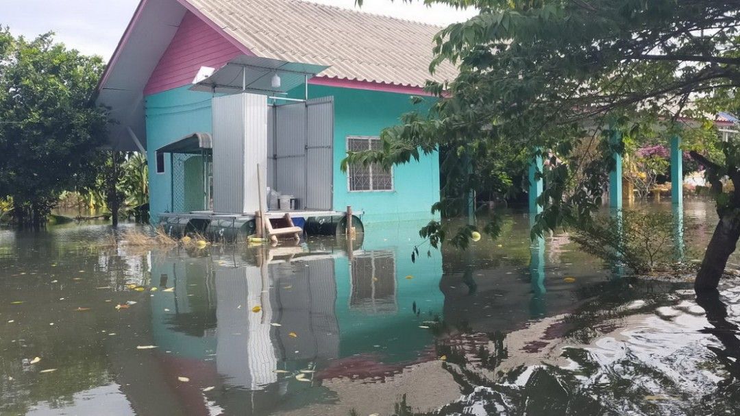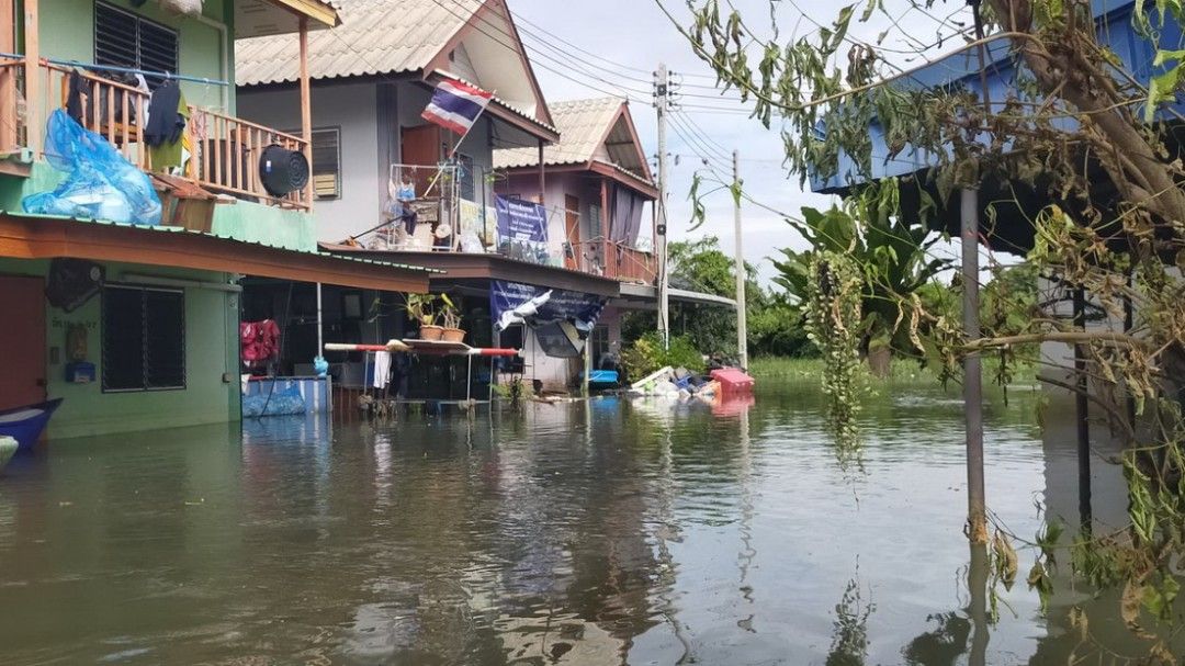 วันที่ 20 พฤศจิกายน 2568 ผู้สื่อข่าวรายงานว่า สถานการณ์น้ำท่วมในพื้นที่ หมู่บ้านมั่นคงชุมชนที่ 11 ตำบลป่าโมก อำเภอป่าโมก จังหวัดอ่างทอง บ้านเรือนทั้ง 77 หลังยังคงได้รับความเสียหายทั้งหมด โดยเฉพาะบ้านชั้นเดียว โดยชาวบ้านยังต้องใช้ชีวิตอยู่ท่ามกลางน้ำที่ท่วมสูงราว 30-50 เซนติเมตร และเผชิญกับสภาพอากาศที่เย็นลง ทำให้การใช้ชีวิตประจำวันมีความยากลำบากเพิ่มขึ้นอย่างมาก