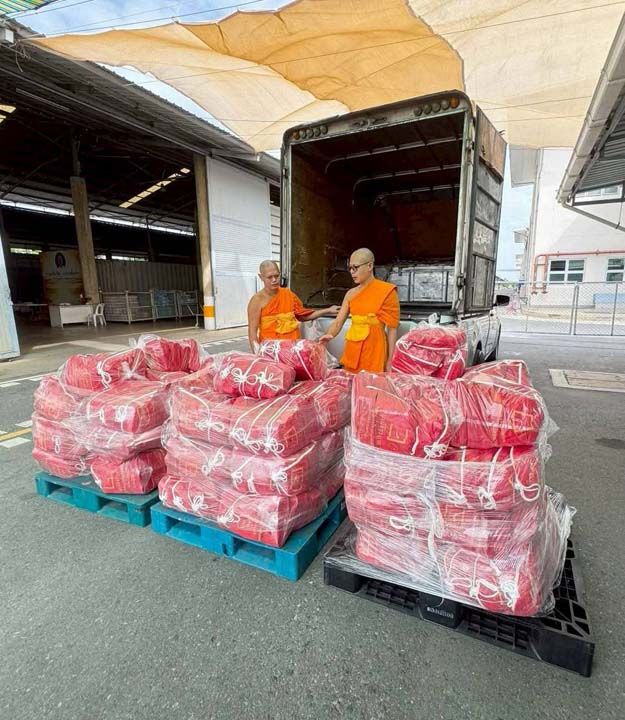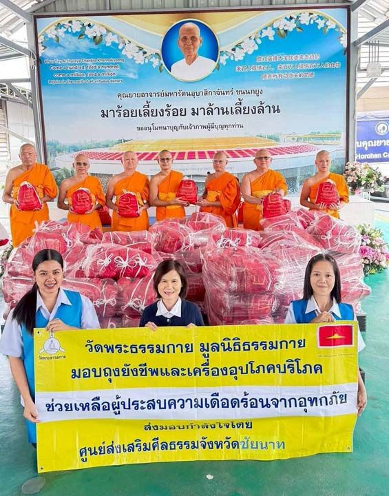 20 พฤศจิกายน 2568 ที่อาคารครัว 71 ปี วัดพระธรรมกาย พระครูปลัดรัตนวีรวัฒน์ (รังสฤษดิ์ อิทฺธิจินฺตโก) เจ้าอาวาสวัดพระธรรมกาย มอบหมายให้ พระมหานพพร ปุญฺญชโย ป.ธ.9 ผู้ช่วยเจ้าอาวาสวัดพระธรรมกาย พระธีระพัฒน์ กุลธีโร หัวหน้าสำนักงานประสานงานเครือข่ายภายในประเทศ พระครูสมุห์ สมชาย วํสธีโร ผู้แทนมูลนิธิธรรมกาย มอบความช่วยเหลือเบื้องต้นแก่ผู้ประสบอุทกภัยในเขตอำเภอเมือง และอำเภอสรรพยาจังหวัดชัยนาท นำโดยพระครูสมณธรรมชัย เจ้าคณะตำบลหาดท่าเสา ผู้ช่วยเจ้าอาวาสวัดพระบรมธาตุวรวิหารเป็นผู้แทนรับมอบถุงยังชีพจำนวน 500 ชุด น้ำหนัก 1,750 กิโลกรัม และยังได้รับความอนุเคราะห์จากอาสาสมัครของ ศูนย์ปฏิบัติธรรมและศูนย์อบรมเยาวชนชัยนาท นำถวายให้แด่พระภิกษุสงฆ์และมอบแก่ประชาชนผู้เดือดร้อนต่อไป