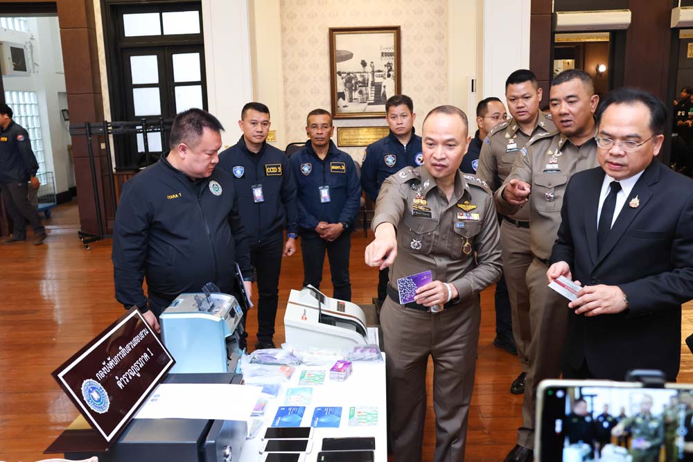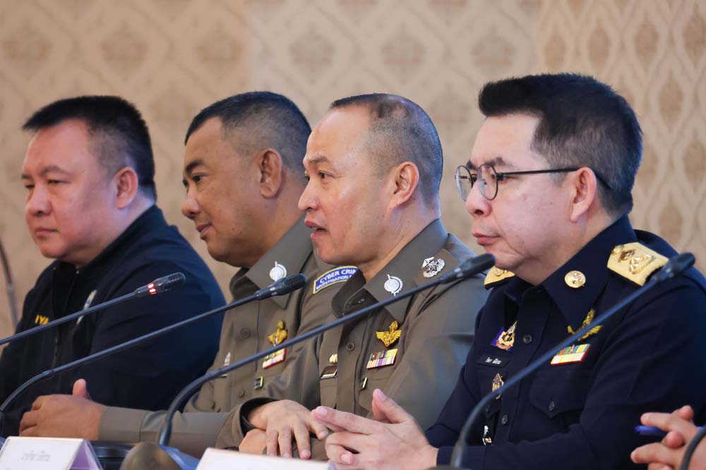 วันที่ 21 พฤศจิกายน 2568 เวลา 10.30 น. พล.ต.ท.ไตรรงค์ ผิวพรรณ รองจเรตำรวจแห่งชาติ ในฐานะ รอง ผอ.ศปอส.ตร. และประธานอนุกรรมการประชาสัมพันธ์ป้องกันการกระทำความผิดอาชญากรรมทางเทคโนโลยี พร้อมด้วย พล.ต.ต.วิชิต บุญชินวุฒิกุล รองผู้บัญชาการตำรวจภูธรภาค 1, พล.ต.ต.วรชาติ แสนคำ ผู้บังคับการสืบสวนสอบสวน ตำรวจภูธรภาค 1, พล.ต.ต.คมกฤช สุขไทย ผู้บังคับการตำรวจสืบสวนสอบสวนอาชญากรรมทางเทคโนโลยี 3, พ.ต.อ.อดิชาต อมรประดิษฐ ผู้กำกับการวิเคราะห์ข่าวและเครื่องมือพิเศษ บก.สอท.3, นายวิทยา นีติธรรม ผู้ช่วยเลขาธิการและโฆษกสำนักงานป้องกันและปราบปรามการฟอกเงิน (ปปง.) และ ดร.ดรุณวรรณ ชาญพิพัฒนชัย ที่ปรึกษาคณะอนุกรรมการฯ ร่วมแถลงผลการดำเนินการปราบปรามอาชญากรรมทางเทคโนโลยี ของ ศปอส.ตร. และคณะอนุกรรมการประชาสัมพันธ์ป้องกันการกระทำความผิดอาชญากรรมทางเทคโนโลยีณ ห้องสารสิน ชั้น 2 อาคาร 1 สำนักงานตำรวจแห่งชาติ