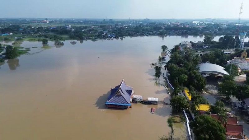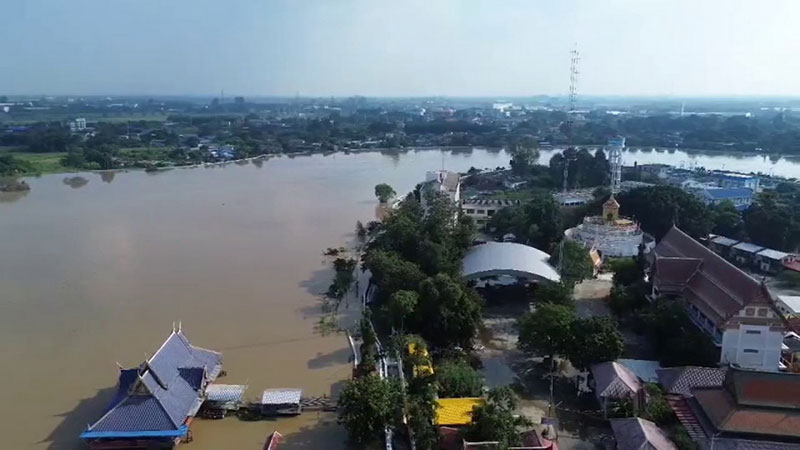 ขณะที่พื้นเขื่อนริมสองฝั่งแม่น้ำเจ้าพระยา น้ำยังคงวิกฤตสูงกว่าตลิ่งอยู่แนวกำแพงเขื่อน ล่าเขื่อนเจ้าพระยา จังหวัดชัยนาท ระบายน้ำลงสู่ท้ายเขื่อน 2,570ลบ.ม./วินาที ไหลผ่านแม่น้ำเจ้าพระยา จังหวัดอ่างทอง ที่บริเวณหน้าศาลากลาง จ.อ่างทอง ระดับน้ำสูง 9.24 เมตร จุดวิกฤตอยู่ที่ 8 เมตร จากระดับตลิ่งที่มีเขื่อนกั้นน้ำ 10 เมตร ปริมาณน้ำไหลผ่าน 2,506 ลบ.ม./วินาที.