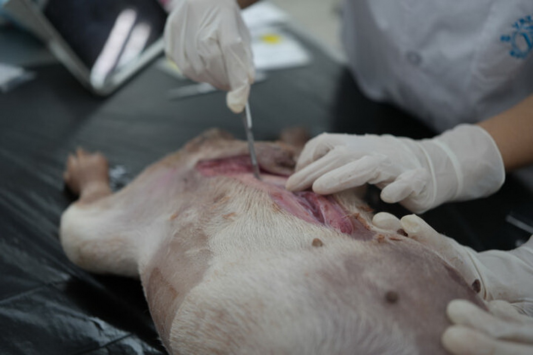“เมื่อได้ร่างมาต้องผ่าเอาอวัยวะภายใน และต้องแช่น้ำยา ZF ไม่อย่างนั้นภายใน 1-2 วัน อวัยวะภายในจะเน่าและจำเป็นต้องทิ้ง จากที่ทดลองมาเมื่อ 2-3 เดือนก่อน เราได้ร่างม้าที่มาผ่าซาก เราเก็บส่วนของลำไส้ใหญ่ที่เราใช้เรียน แช่ในน้ำยา ZF ตอนนี้อยู่ในสภาพที่สมบูรณ์ซึ่งสามารถใช้เรียนได้”