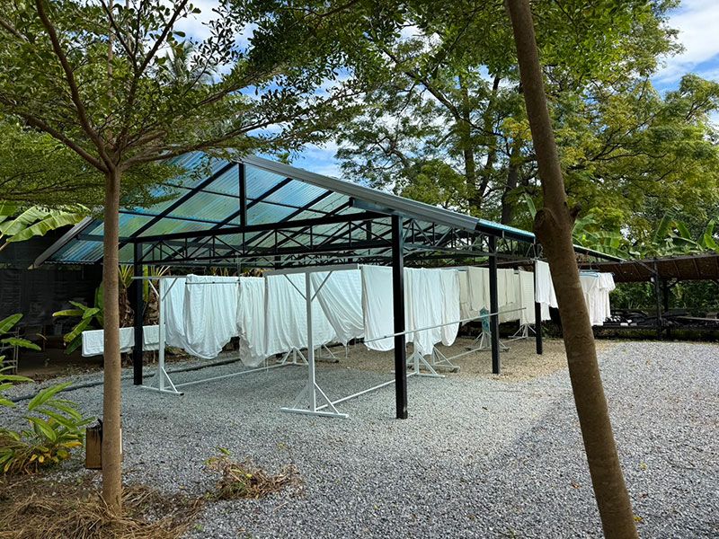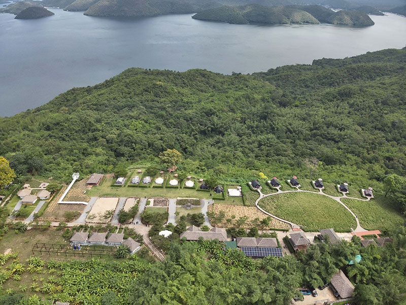 โดยเต้นท์กระโจม สร้างห่างกันอย่างเป็นสัดส่วน มีจำนวน 8 หลัง ห้องพักทั้ง 8 หลังยกพื้นสูง มีสะพานทางเดินเข้าถึง และพบว่ามีลานสำหรับกางเต้นท์อีก 6 จุด และนอกจากนี้ยังมีห้องให้บริการเป็นบ้านพักชั้นครึ่งและบ้านพักหลังใหญ่ 2 ชั้น รวมถึงสิ่งปลูกสร้างต่างๆรวม 44 รายการ ขณะเข้าตรวจสอบนั้นยังพบว่ามีนักท่องเที่ยวมาใช้บริการอยู่จำนวนหนึ่ง โดยพนักงานแจ้งว่าพวกตนทำงานมีรายได้เป็นรายวันๆละ 300 บาท หากมีโอทีจะได้ชั่วโมงละ 50 บาท สำหรับเจ้าของไม่อยู่ในพื้นที่ ส่วนใหญ่จะมาเฉพาะวันเสาร์-อาทิตย์ ขณะที่ผู้จัดการไม่อยู่เพราะเพิ่งเดินทางกลับบ้านที่ต่างจังหวัด