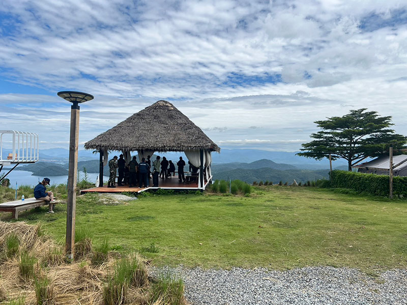 เมื่อคณะเจ้าหน้าที่เดินทางไปถึง ได้เรียกพนักงานมาพบ พร้อมอ่านหมายค้นให้พนักงานเข้าใจถึงสาเหตุการมา ตรวจสอบ หลังจากอ่านหมายค้นแล้วเสร็จพนักงานจึงนำพาเจ้าหน้าที่เข้าไปตรวจสอบในพื้นที่ดังกล่าว พบสถานที่ให้บริการแก่นักท่องเที่ยวมีลักษณะเป็นเต้นท์กระโจม สร้างอยู่หน้าผาสูงบรรยากาศแบบซีวิวมองจากที่สูงลงไปเห็นอ่างเก็บน้ำและเกาะแก่งต่างๆในอ่างเก็บน้ำเขื่อนศรีนครินทร์ได้อย่างสวยงาม