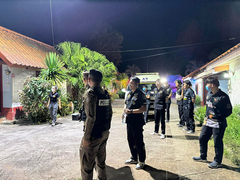 กระทั่งถึงเวลาบ่ายสี่โมง ก็ยังไม่เห็นผู้หญิงออกมา ส่วนผู้ชายออกไปตอนไหนไม่เห็นจริงๆ ตนจึงเดินไปปลุกโดยการเขย่าแขน แต่พอจับแขนก็รู้สึกว่าแข็งแล้ว จึงรีบโทรศัพท์แจ้งเจ้าหน้าที่ตำรวจดังกล่าว ซึ่งจากการตรวจสอบชายคนดังกล่าว เป็นหนุ่มในหมู่บ้านเดียวกันแต่คนละหมู่เท่านั้น หลังพบศพได้หายไปจากชุมชน ตำรวจสายสืบกำลังติดตามตัวมาสอบสวนหาข้อเท็จจริงต่อไป.