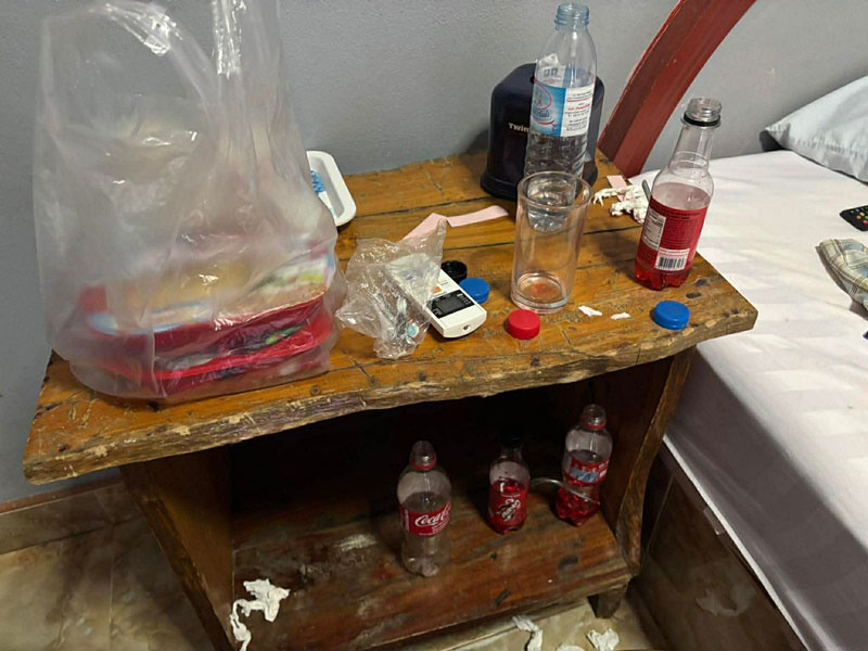 ภายในห้องพักพบผู้เสียชีวิตเป็นเพศหญิง ในลักษณะนอนตะแคงซ้าย หน้าคว่ำอยู่บนที่นอน ท่อนร่างเปลือยเปล่า ที่ปลายเตียงมีอุปกรณ์การเสพยาบ้า ส่วนบนโต๊ะข้างเตียงมียาบ้าวางอยู่ 3 เม็ด จึงเก็บไว้เป็นหลักฐาน ตรวจรอบห้องทั้งภายในภายนอกไม่พบร่องรอยการต่อสู้ มีเพียงรถจักรยาน 1 คันอยู่จอด สันนิษฐานว่าเสียชีวิตมาไม่น้อยกว่า 6 ชั่วโมง และทราบต่อมาว่าผู้ตายชื่อ น.ส.กิ๊ก มีบ้านอยู่ไม่ไกลจากรีสอร์ทมากนัก จึงติดต่อญาติให้เดินทางมาดูศพ และไม่ติดใจในการเสียชีวิต จึงขอศพไปบำเพ็ญกุศลตามศาสนาที่บ้าน
