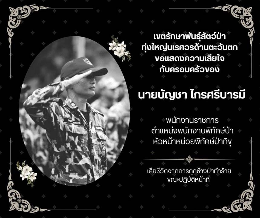 ขณะเดียวกัน เพจกรมอุทยานแห่งชาติ สัตว์ป่า และพันธุ์พืช โพสต์ข้อความว่า “อาลัยยิ่ง "ครูตู้" บัญชา ไกรศรีบารมี หัวหน้าหน่วยพิทักษ์ป่าทิขุ เขตรักษาพันธุ์สัตว์ป่าทุ่งใหญ่นเรศวรด้านตะวันตก จ.กาญจนบุรี ซึ่งเสียชีวิตจากการถูกช้างป่าทำร้ายขณะปฏิบัติหน้าที่
