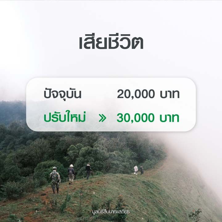 ขณะที่วันนี้ (24 พ.ย.68) นางสาวอรยุพา สังขะมาน เลขาธิการมูลนิธิสืบนาคะเสถียร เปิดเผยว่า กรณีของนายบัญชา กองทุนเพื่อผู้พิทักษ์ป่ามูลนิธิสืบนาคะเสถียร มีเงินกองทุนช่วยเหลือผู้พิทักษ์ป่า ในกรณีบาดเจ็บ-เสียชีวิต จากการปฏิบัติหน้าที่ลาดตระเวน ใน 3 กรณี ดังนี้ 1.กรณีเสียชีวิต จาก 20,000 บาท ปรับใหม่เป็น 30,000 บาท 2.กรณีเจ็บสาหัส พิการ ทุพพลภาพ จ่ายตามจริงไม่เกิน 20,000 บาท (คงเดิม) 3.กรณีเจ็บ/ป่วย จากเดิม จ่ายตามจริงไม่เกิน 5,000 บาท ปรับใหม่เป็น 10,000 บาท โดยเริ่มให้การช่วยเหลือหลักเกณฑ์ใหม่นี้ ตั้งแต่เดือน มกราคม 2568 เป็นต้นไป ในส่วนของการช่วยเหลือจากกรณีประสบเหตุ จากการทำงานปกติ นั้นยังคงการช่วยเหลือไว้ดังเดิม