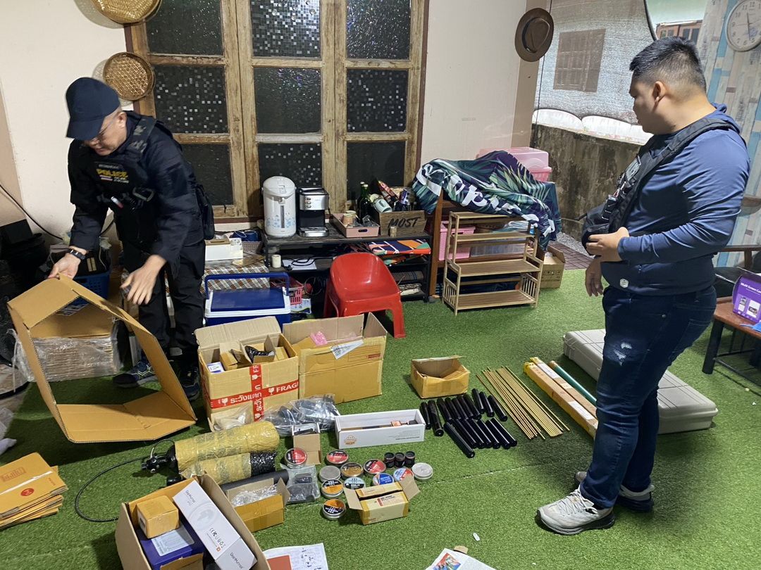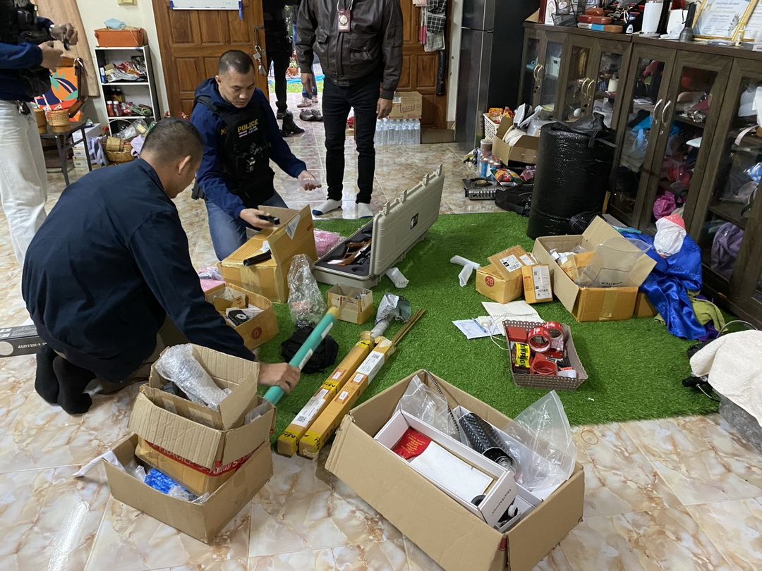 ผลการตรวจค้นบ้านพักของ นายธรวัฒน์ ตามหมายศาลจังหวัดเลย ที่ 498/2568 ลงวันที่ 23 พฤศจิกายน 2568 เจ้าหน้าที่สามารถตรวจยึดของกลางพร้อมบัญชีลูกค้า รวมทั้งหมด 22 รายการ นอกจากนี้ยังตรวจสอบโทรศัพท์มือถือของ นายธรวัฒน์ พบข้อความการติดต่อซื้อขายอุปกรณ์บังคับเสียง และหลักฐานการส่งสินค้าให้กับลูกค้าผ่านทางไลน์