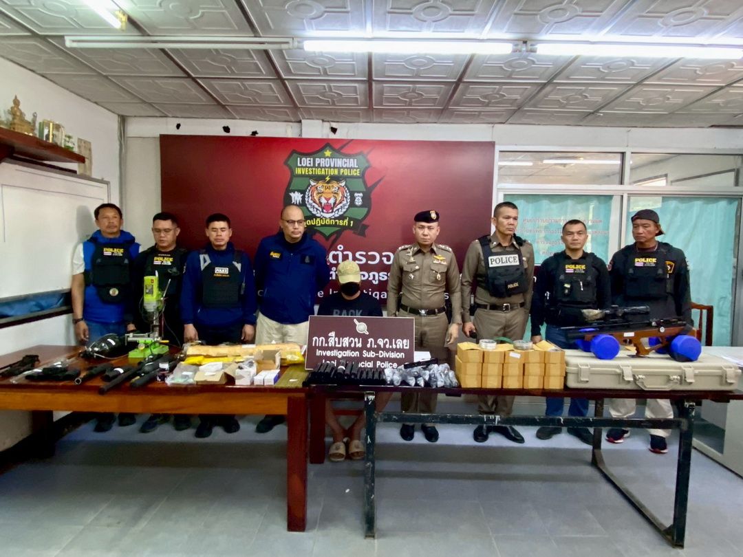 วันที่ 24 พฤศจิกายน 2568 ผู้สื่อข่าวรายงานว่า ผลการปฏิบัติงานของตำรวจภูธรจังหวัดเลย ในการปราบปรามอาชญากรรมทางเทคโนโลยีและอาวุธปืน โดยกองกำกับการสืบสวนตำรวจภูธรจังหวัดเลย ได้รับแจ้งว่า นายธรวัฒน์ อายุ 50 ปี ราษฎรบ้านศรีภูธร ต.ปากชม อ.ปากชม จ.เลย มีพฤติการณ์รับจ้างดัดแปลง ซ่อมแซม แก้ไข อาวุธปืน และอุปกรณ์ที่ใช้สำหรับอาวุธ รวมทั้งจำหน่าย เครื่องบังคับเสียงปืน (กระบอกเก็บเสียง) หรือไซเลนเซอร์ ซึ่งเข้าข่ายเป็นยุทธภัณฑ์ ตาม พ.ร.บ. ควบคุมยุทธภัณฑ์ พ.ศ. 2530 โดยขายสินค้าผ่านช่องทางไลน์และเฟซบุ๊ก และใช้บริการขนส่งเอกชนในการส่งสินค้าให้กับลูกค้าทั้งในจังหวัดเลยและต่างจังหวัด
