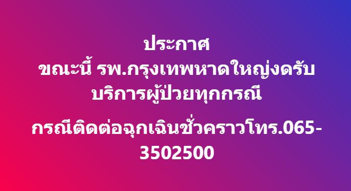 โดย โรงพยาบาลกรุงเทพหาดใหญ่ ยังแจ้งข่าวด้วยว่า ขณะนี้ รพ.กรุงเทพหาดใหญ่งดรับบริการผู้ป่วยทุกกรณี กรณีติดต่อฉุกเฉินชั่วคราวโทร.065-3502500