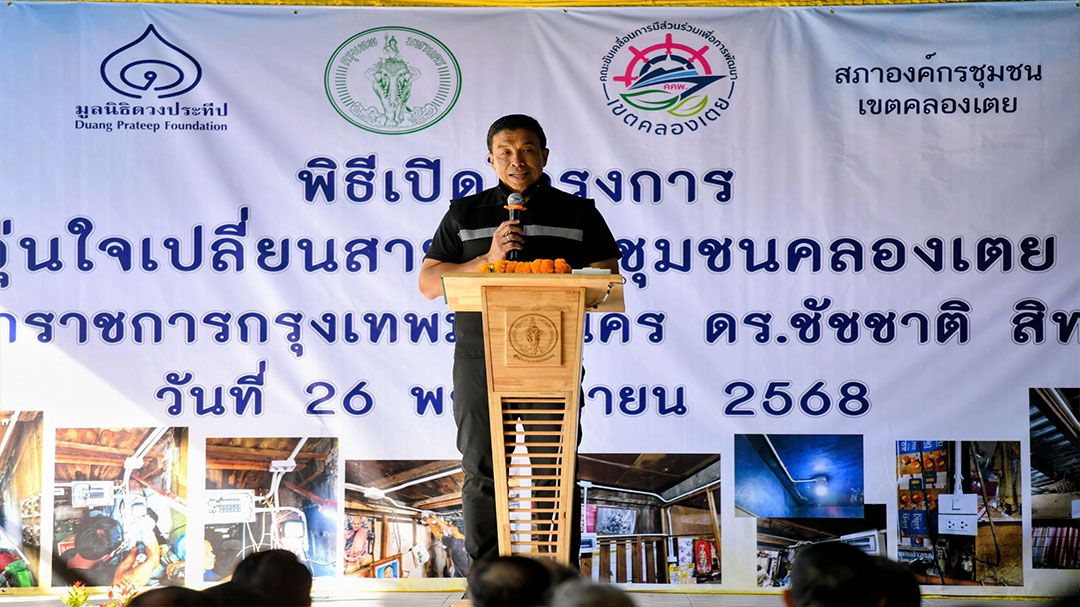 วันที่ 26 พ.ย.68 นายชัชชาติ สิทธิพันธุ์ ผู้ว่าราชการกรุงเทพมหานคร เป็นประธานพิธีเปิดโครงการ "อุ่นใจเปลี่ยนสายไฟในชุมชมเขตคลองเตย" ณ ลานกีฬาชุมชนน้องใหม่คลองเตย เขตคลองเดย โดย นางประทีป อึ้งทรงธรรม ฮาตะ เลขาธิการมูลนิธิดวงประทีป และประธานโครงการ กล่าวรายงานความเป็นมา นายบำรุง สำเนียงงาม ผู้อำนวยการเขตคลองเตย ผู้แทนสภาองค์กรชุมชนเขตลองเตย คณะขับเคลื่อนการมีส่วนร่วมเพื่อการพัฒนาเขตคลองเตย ผู้แทนโรตารี ผู้แทนองค์กร ชุมชน และผู้เกี่ยวข้อง ร่วมพิธีเปิด