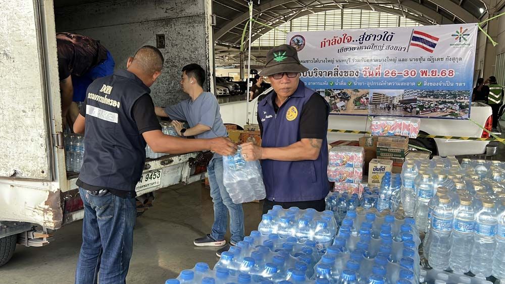 นนทบุรี สมาคมชาวใต้นนท์ร่วมกับตลาดบางใหญ่รับบริจาคสิ่งของพร้อมส่งกำลัง อส.12 นาย ลงพื้นที่ช่วยบรรทุกข์พี่น้องชาวใต้