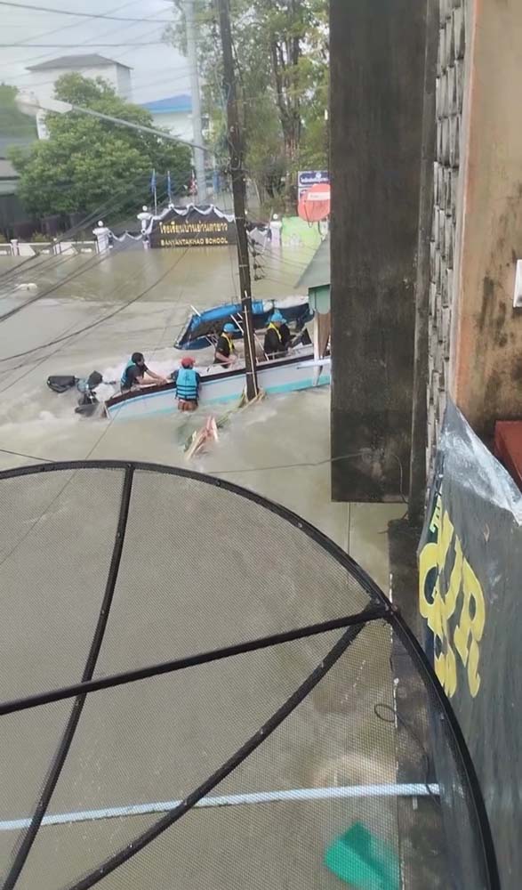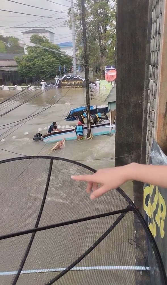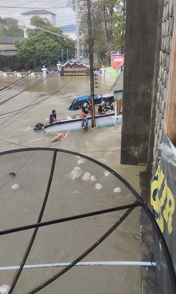 วันที่ 26 พฤศจิกายน 2568 ผู้สื่อข่าวรายงานว่า เมื่อวานนี้ (25 พ.ย.) เฟซบุ๊ก “Pongthep Ponrak” ได้เผยแพร่คลิปวิดีโอเหตุการณ์ขณะเรือกู้ภัยลำหนึ่งขับฝ่ากระแสน้ำเชี่ยวบริเวณสามแยกโรงเรียนบ้านย่านตาขาว ในเขตเทศบาลตำบลย่านตาขาว ขณะกำลังนำข้าวกล่องไปแจกให้ชาวบ้านที่ประสบภัยน้ำท่วมและยังติดค้างอาศัยอยู่ภายในบ้าน