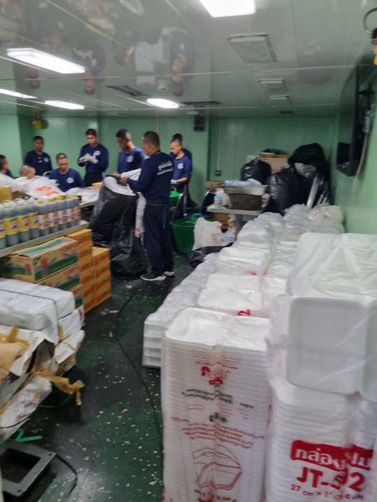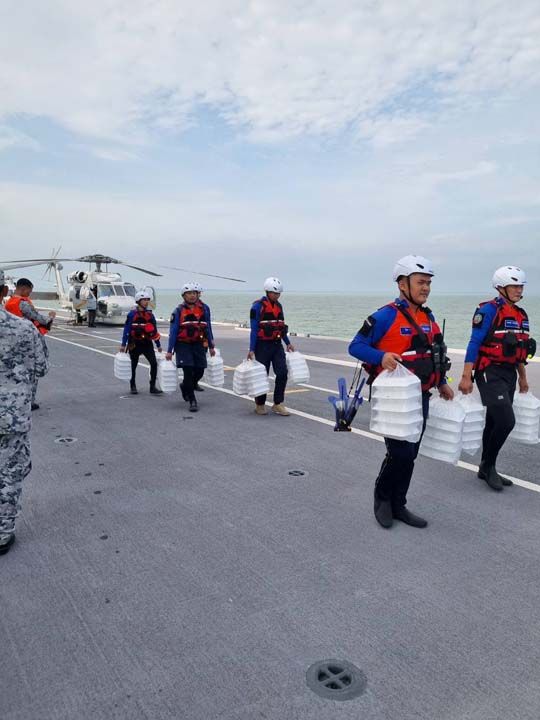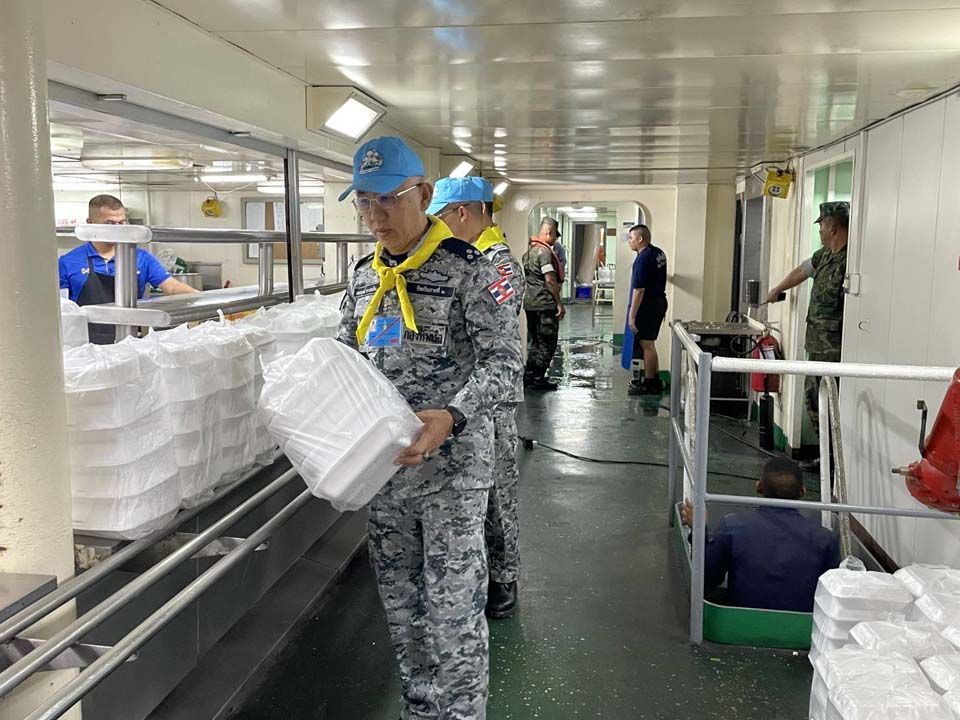 ทั้งนี้ กำลังพลประจำโรงครัวได้จัดเตรียมอาหารปรุงสุกและน้ำดื่ม จำนวน 3,000 ชุด เพื่อส่งมอบให้ประชาชนในพื้นที่ประสบภัยในหลายจุดที่การสัญจรทางบกยังเข้าถึงได้ยาก โดยได้จัดอากาศยานเฮลิคอปเตอร์ของกองทัพเรือทำการลำเลียงสิ่งของบรรเทาทุกข์ดังกล่าวขึ้นบินในช่วงเช้าของวันนี้แล้ว